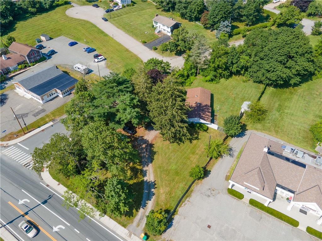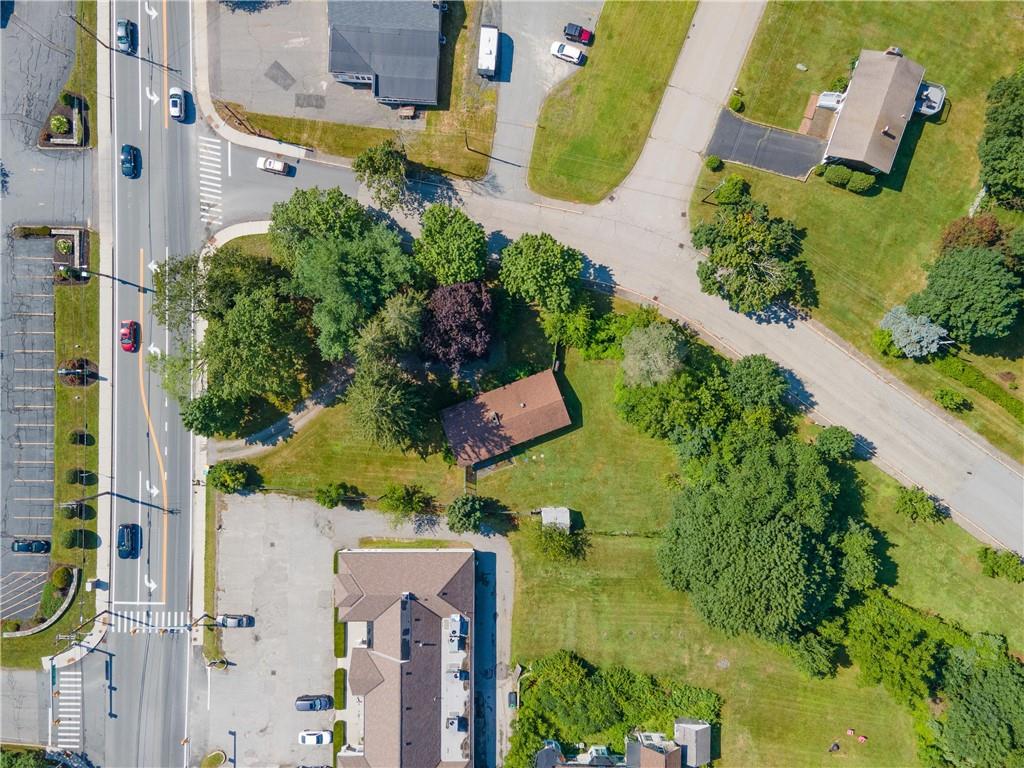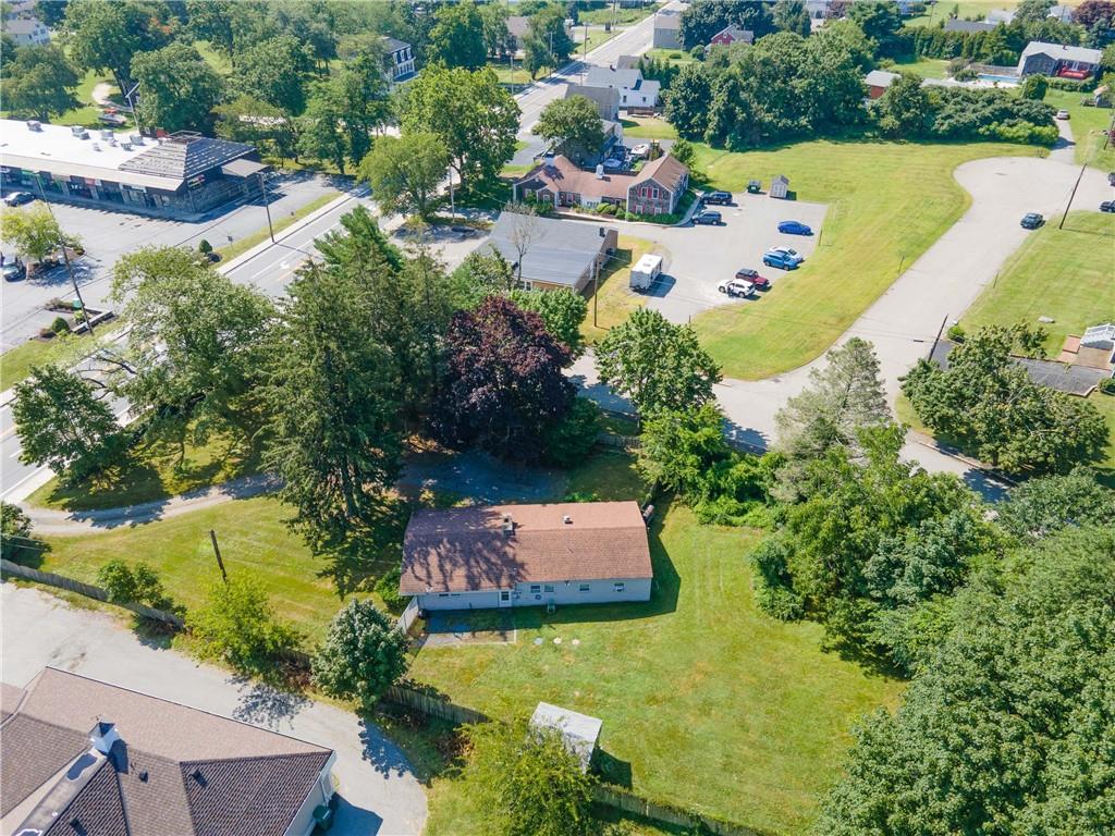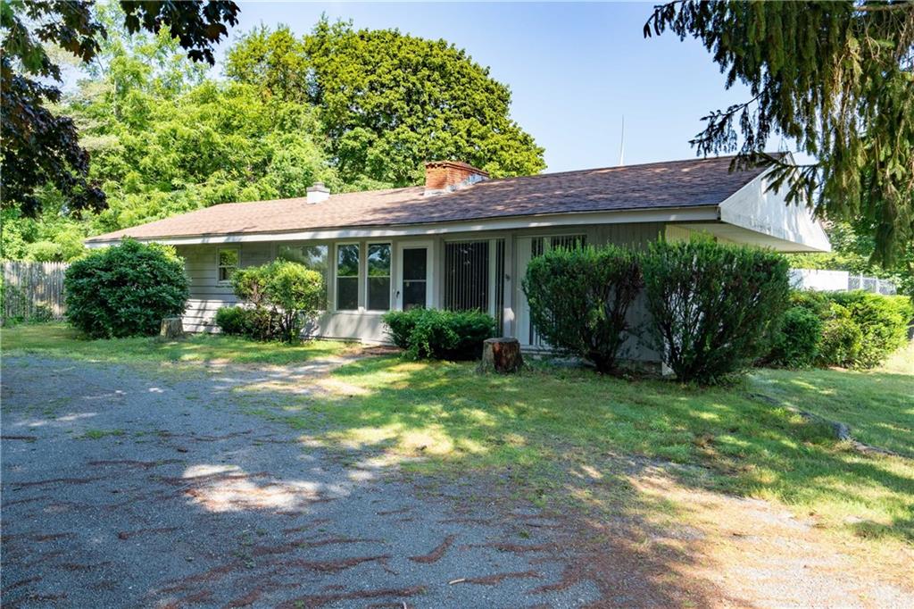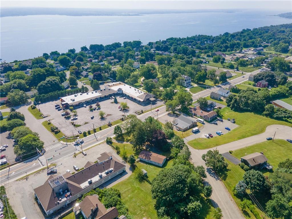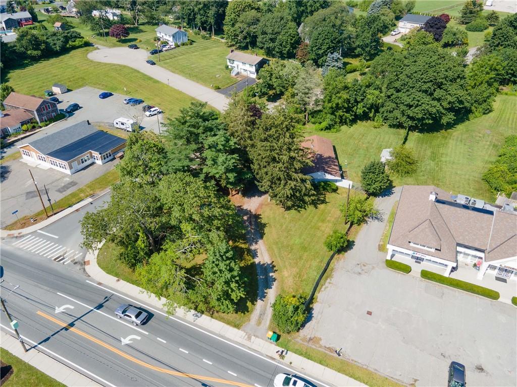 Excellent opportunity to buy prime .53 acre commercial corner located at entrance/exit to Portsmouth High School in the center of town. This high traffic count offering includes an access easement over 3030 East Main Road…a busy retail plaza at the traffic light, an approved curb cut on Patriot’s Drive, and DEM approved septic design for 30 seats. Site plan includes parking for 22+ cars. Currently there is a single family mid century modern ranch, rented through Dec.