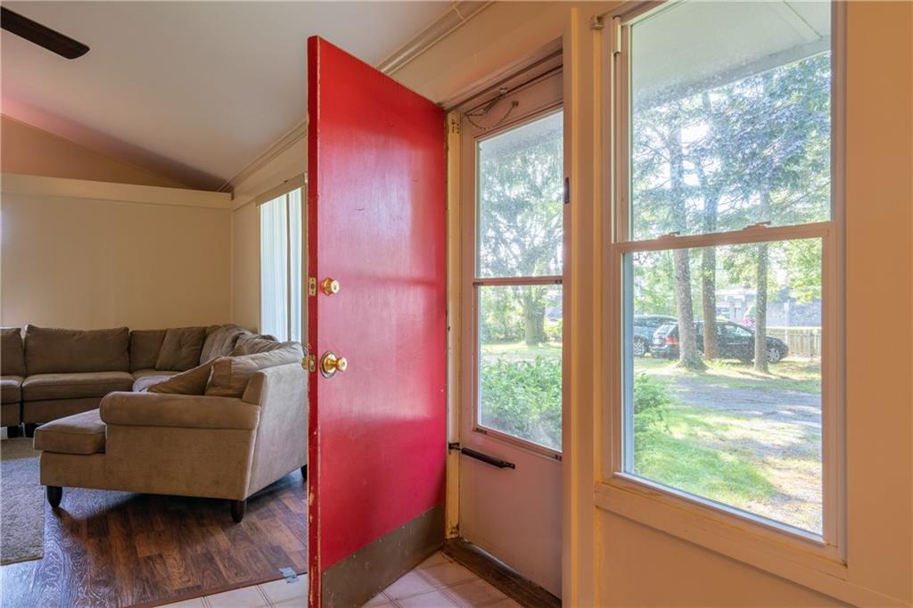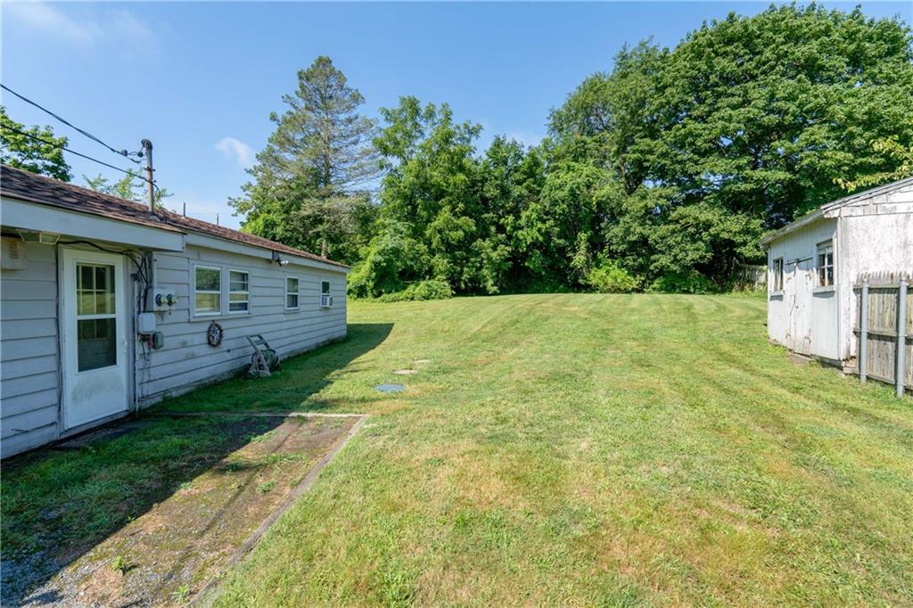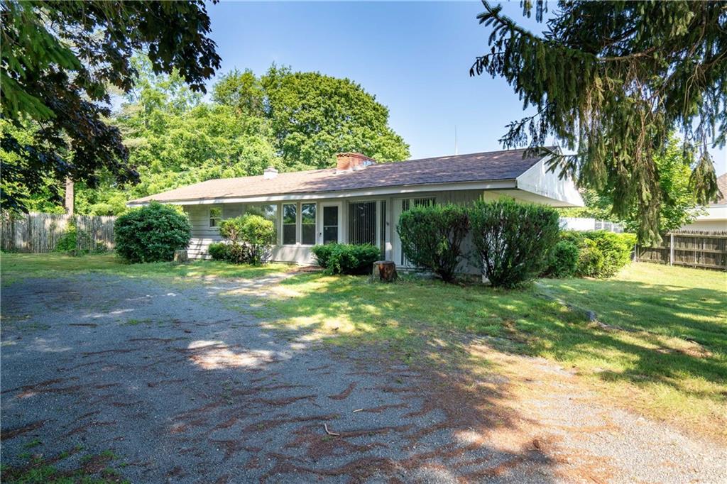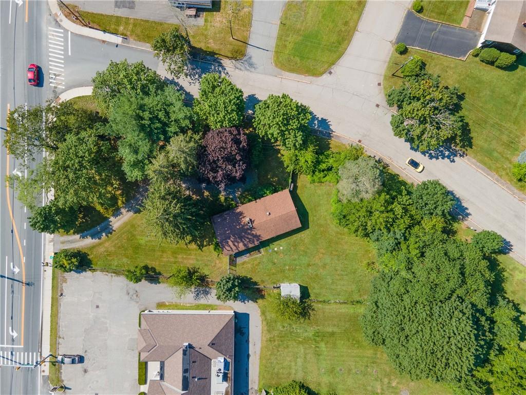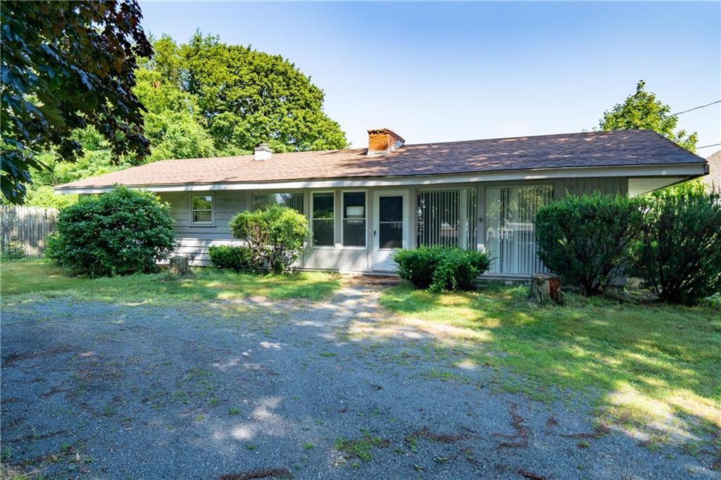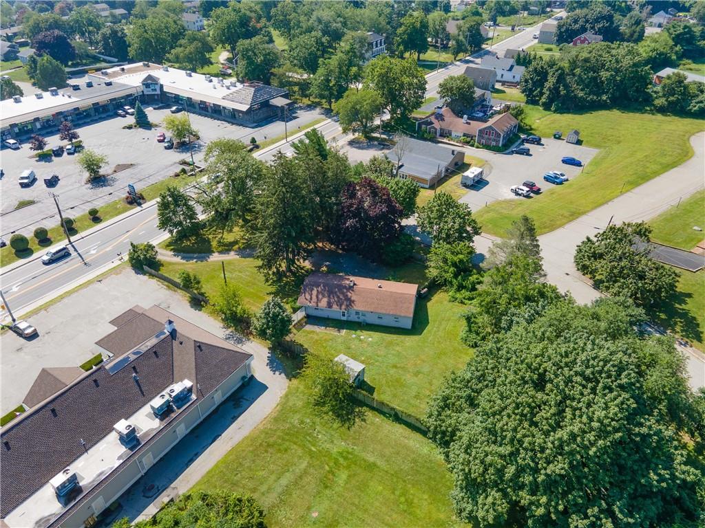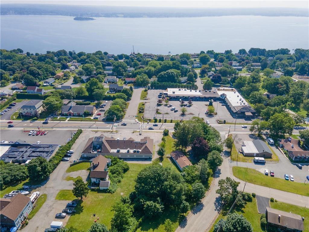 Excellent opportunity to buy prime .53 acre commercial corner located at entrance/exit to Portsmouth High School in the center of town. This high traffic count offering includes an access easement over 3030 East Main Road…a busy retail plaza at the traffic light, an approved curb cut on Patriot’s Drive, and DEM approved septic design for 30 seats. Site plan includes parking for 22+ cars. Currently there is a single family mid century modern ranch, rented through Dec.