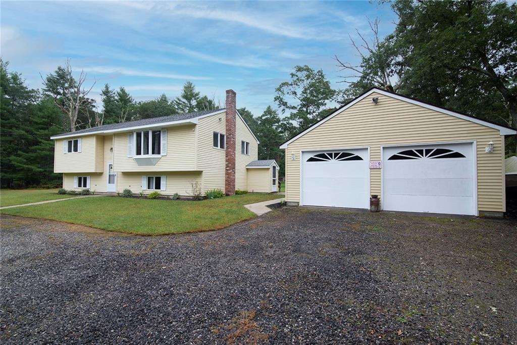 Lots of space inside and out. If you enjoy out door activities and entertaining, you will love the 2.54 acres some wooded, but mostly cleared. Detached garage and a storage shed. Raised Ranch with a finished lower level with private entrance featuring a family room with wet bar and hearth for a wood or pellet stove.