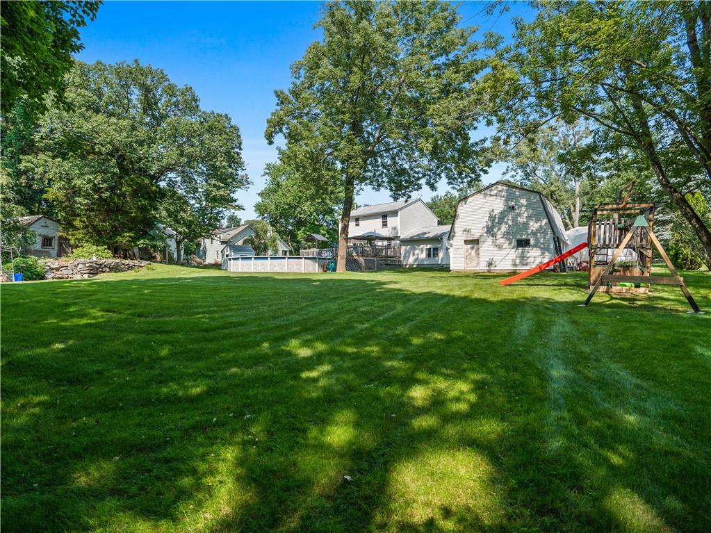 Welcome home to this charming colonial with huge u-shaped driveway providing plenty of parking. Attached garage AND detached garage with loft that is wired with electrical! Beautiful, huge backyard with above ground pool and sitting area. Big deck for entertaining! This home offers 3 beds, 1.5 baths and partially finished basement for extra living space. Great living room with gas fireplace and separate dining area.