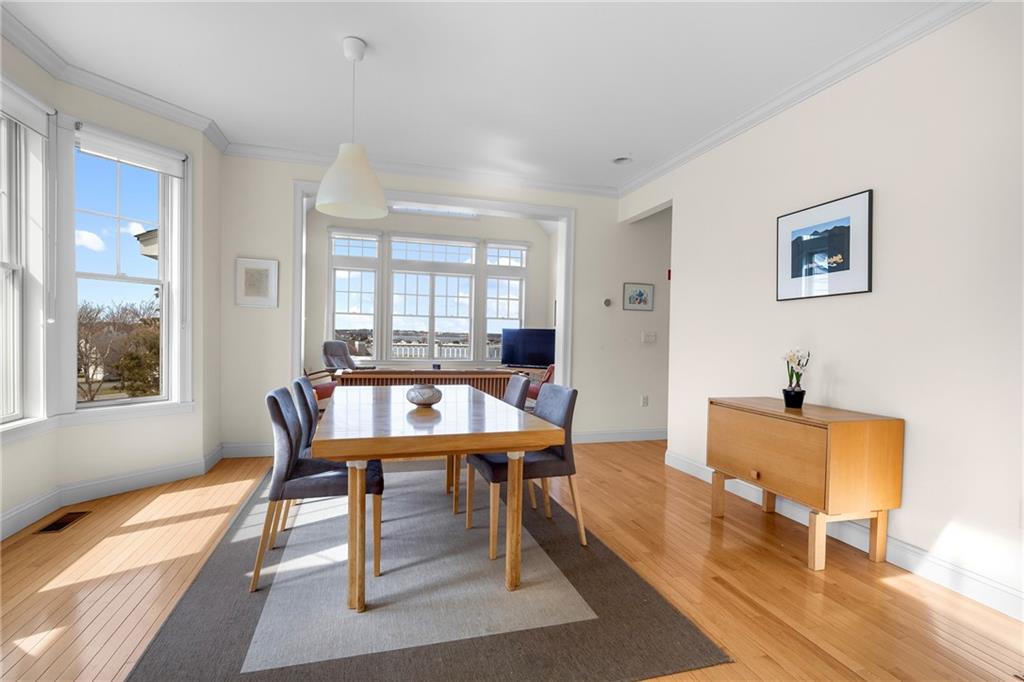 This beautifully designed, sun filled end townhome offers a perfect blend of comfort and style, featuring ideal south west facing windows bringing in an abundant of natural light and stunning sunsets. Two story living room with dramatic windows over looking Mount Hope Bay captures your attention the minute you step inside. The open concept living, dining and kitchen create a seamless flow for entertaining and everyday living. The home offers two primary suites, one on each floor and both with spacious ensuite baths and closets; the main level den, laundry and garage access make it easy to live on one floor if that is your current or future goal.