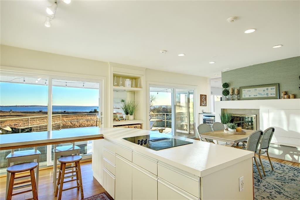 Discover the beauty of Barrington’s exclusive Rumstick Point waterfront retreat with this exceptional contemporary home, perfectly situated on a serene 1.7-acre knoll. Enjoy breathtaking panoramic views of Narragansett Bay and the tranquil 40 acres of conservation marshlands that surround you. This remarkable residence boasts an expansive living/dining area with oversized windows that frame the drama of vibrant sunrises and picturesque sunsets. The open floor plan features back-to-back marble fireplaces, creating an inviting ambiance for entertaining.