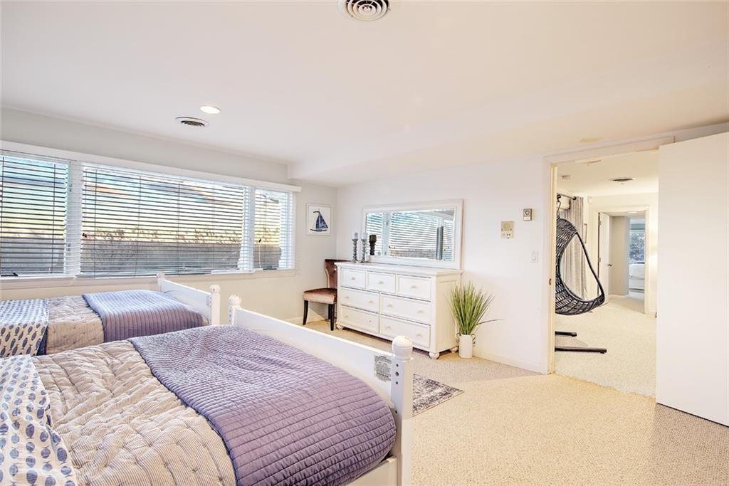 A spacious kitchen seamlessly flows to an expansive upper deck, ideal for soaking in the scenery. The main level features a primary suite with dazzling views, a walk in closet, and luxurious bath complete with double sinks and large tiled walk-in shower. On the the lower level you’ll find three generous bedrooms, a full bath, recreation room, and exercise room with sauna. This area opens to your beautifully landscaped backyard, which includes a path leading to your private beach access. Here, one can explore the waterfront or launch your watercraft into the bay. This unparalleled location invites you to fully embrace the ever-changing natural landscape, providing endless opportunities for enjoyment and adventure throughout the year.