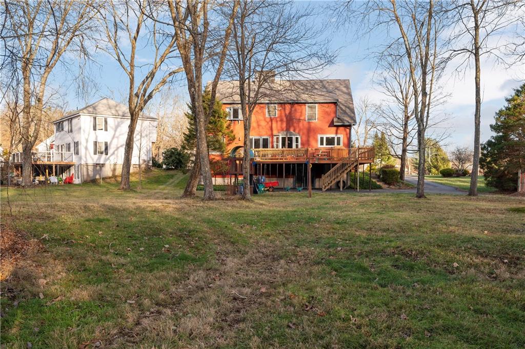 Much admired colonial near the red General Store on Diamond Hill…Set off the road, this 2.5 acre home features the charm of a New England colonial with the open living space so desired today! Enter through the traditional front door and to the right, there is a large living room or den and on the left, an oversized dining room. Hardwood floors throughout the first floor. Across the back of the main level-loaded with windows and light- are the kitchen & island, the dining area and a family room – all able to enjoy the beautiful wood-burning fireplace along the center wall & the peaceful wooded backyard through the oversized sliders and windows. The deck is fantastic and includes a direct gas line to the gas grill for easy entertaining and barbeques.