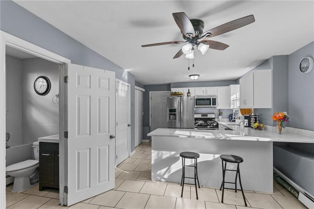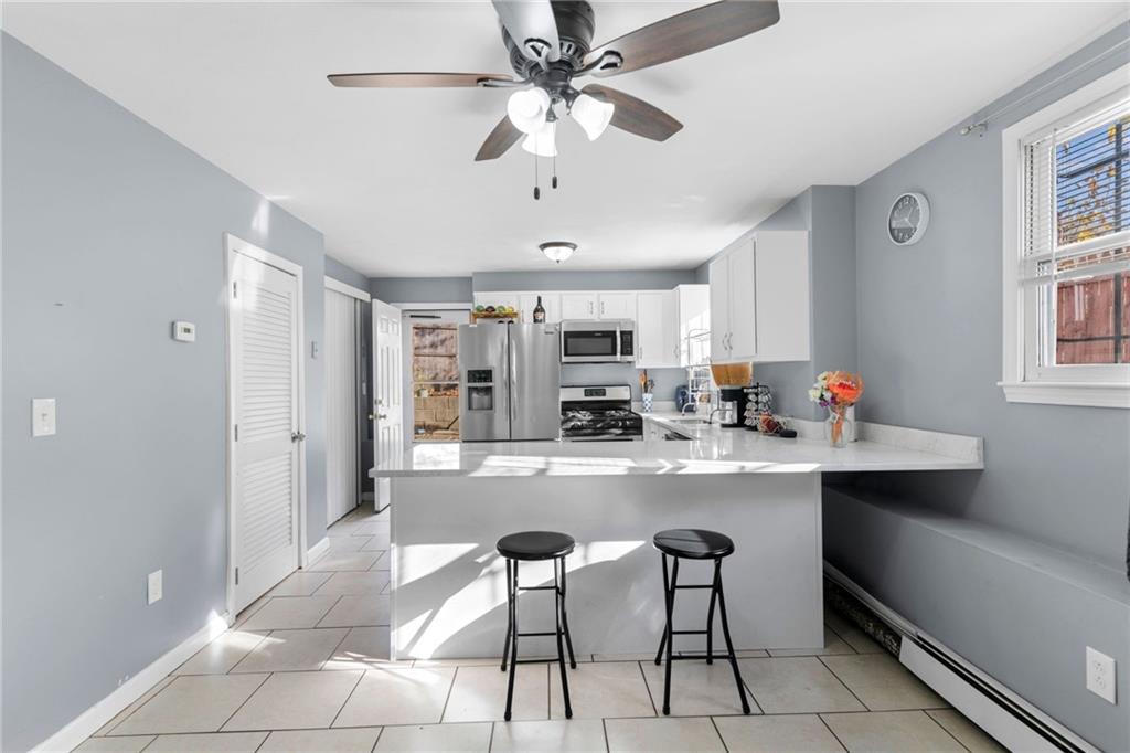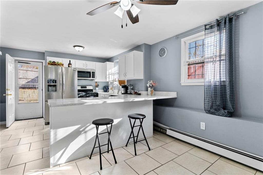 This contemporary style home is awsome and newly renovated with lots of recent upgrades including brand new kitchen. First floor is open living/dining and kitchen area with a full bath and laundry room. Super wide staircase brings you up to 3 bedrooms including a large master with a 2nd full bath. Outside has a cute fenced in backyard with a shed.