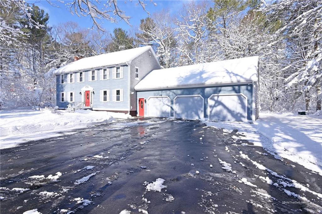 Your search is over with this wonderful 4 bed 2.1 bath Colonial on a corner lot set back from the road with a 3 car garage! Open floor plan great for entertaining, updated kitchen with granite and stainless steel appliances, inviting family room with wood stove, hardwoods, laundry on 1st floor, large master bedroom with huge walk in closet and bath with double sinks, jacuzzi tub and shower. Replacement windows, updated roof and heat. Generator hook up. Oversized circular driveway.
