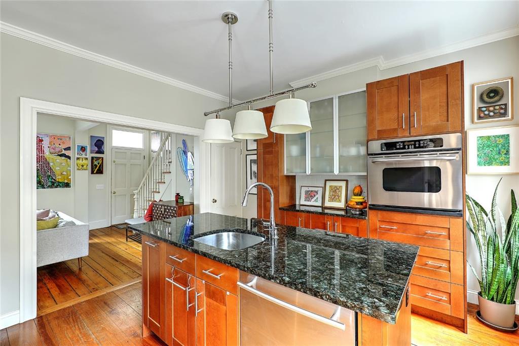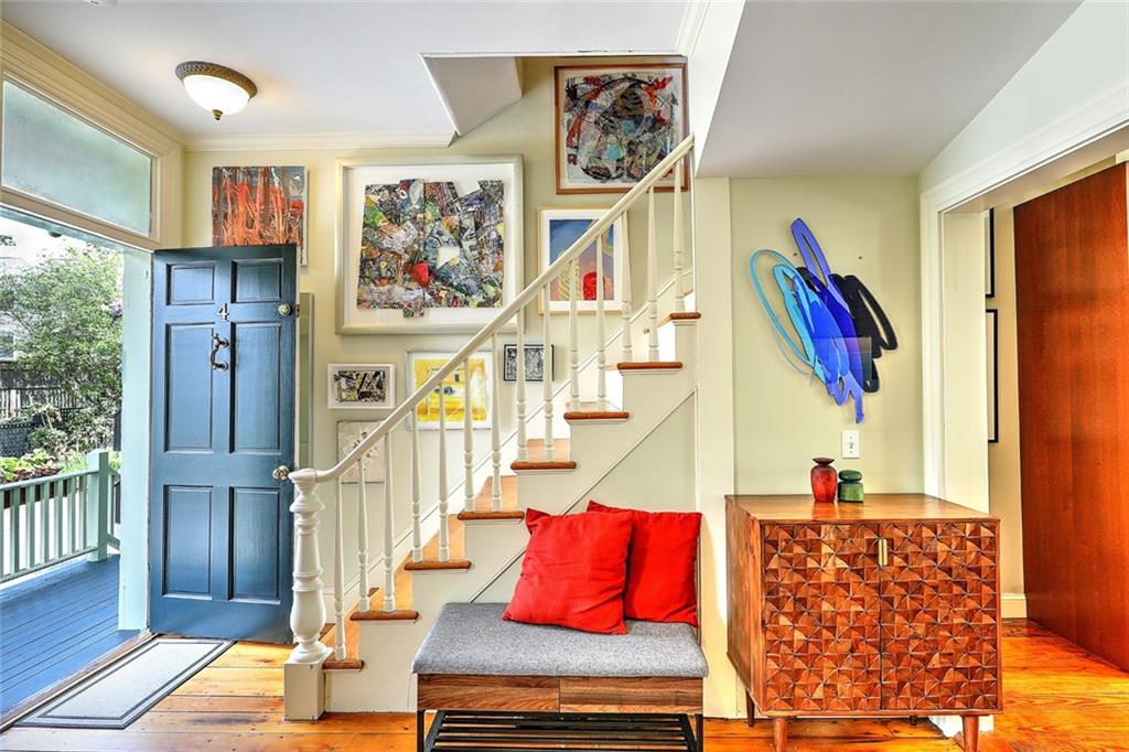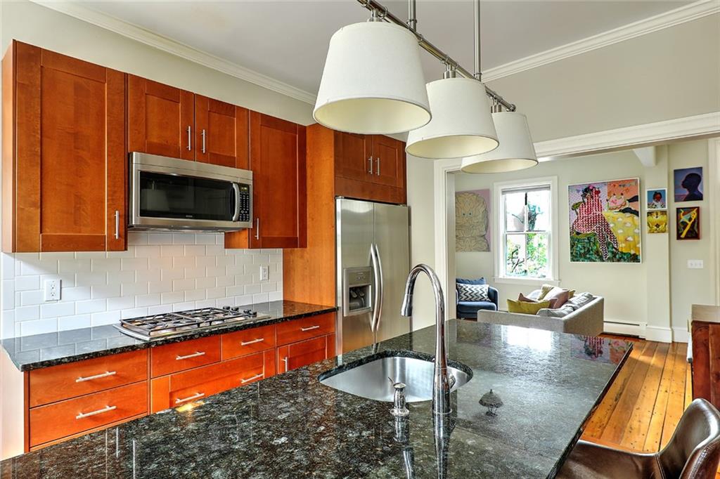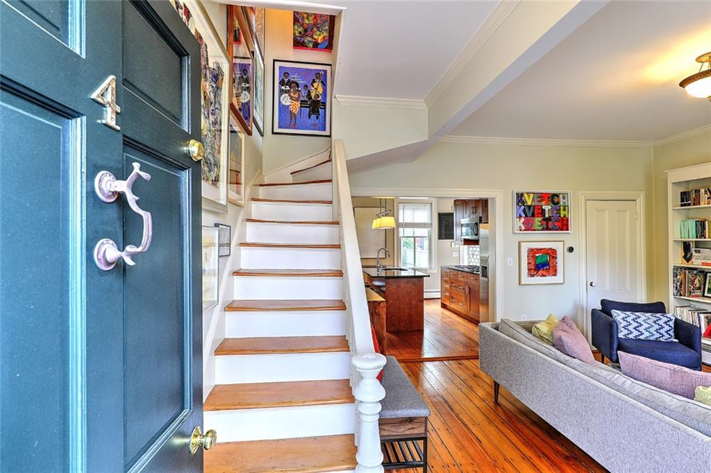 Sweet townhouse on historic College Hill. This delightful home has been beautifully renovated. The first floor boasts a sunny living room with original honey toned wide plank floors. The fully equipped chef’s kitchen has stone counters and wood cabinetry, a half bath and ample storage space.