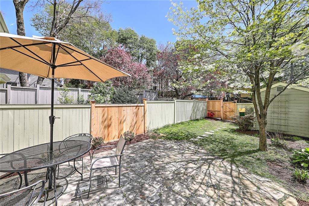 Two bedrooms with hardwood floors and a full bath on the second floor make for an ideal city residence. This home offers a delightful city garden with patio and nice plantings. Off street parking for two cars. Walk to shopping, train and Downtown.