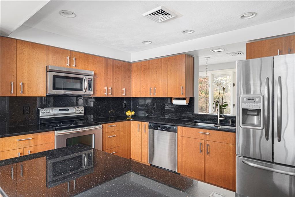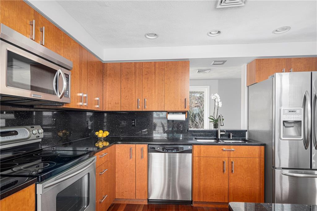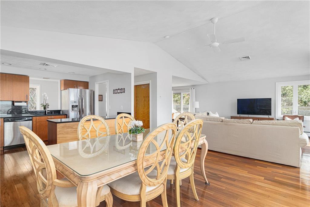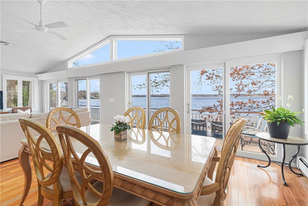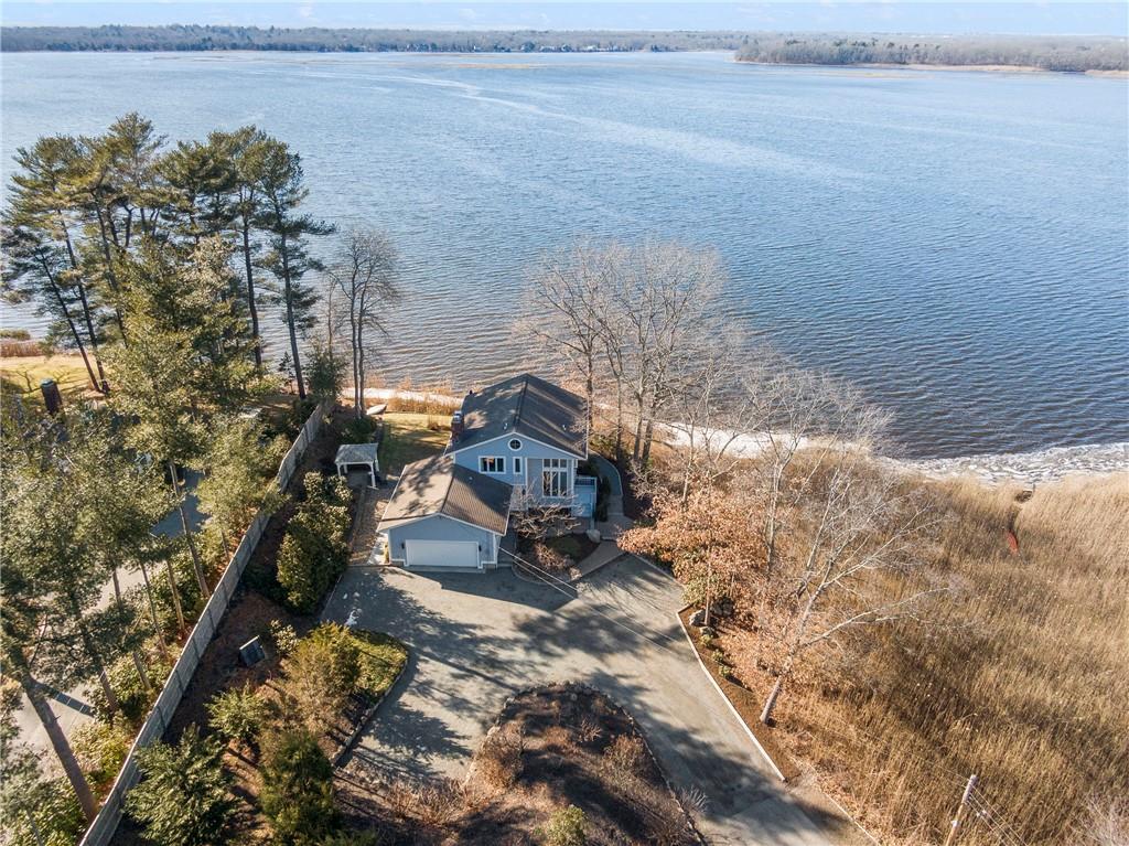 The second floor layout offers an open concept and takes advantage of the views. There are gorgeous Brazilian Mesquite floors throughout. The upper level includes a living room with fireplace, family room and kitchen opening to dining room overlooking the Cove. The kitchen offers custom cherry cabinets, granite countertops with backsplash and recessed lighting. Enjoy entertaining alfresco on the wraparound AZEK deck with custom mahogany railings. There is a pavilion with a view where you can easily add your own hot tub. Improvements include Harvey windows, central air conditioning on the second floor, shed and well for the sprinkler system to name just a few. The Town of Barrington offers Blue Ribbon Schools and beaches. This home is within walking distance to Hampden Meadow Schools. A truly unique opportunity not to be missed.