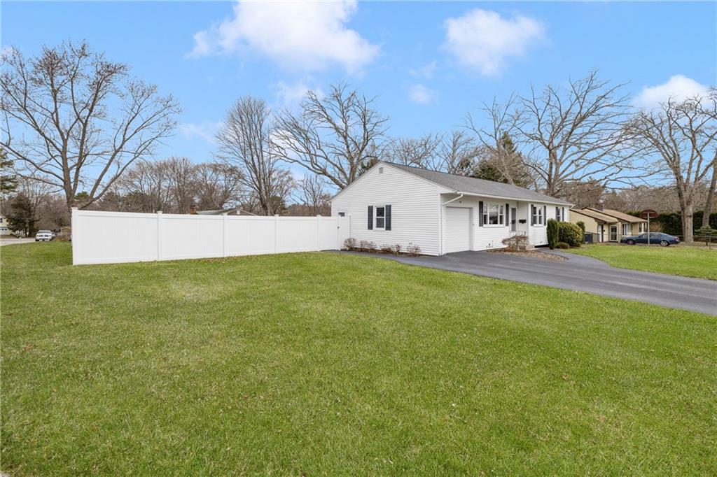 Welcome to this charming 3-bedroom, 1.5-bath ranch on a spacious corner lot in a desirable North Kingstown neighborhood. Featuring a fenced-in yard, a renovated bathroom, a young roof, and new central air conditioning, this home offers modern comfort and convenience. Inside, the bright living room boasts hardwood floors and large windows, creating a warm, inviting space. The kitchen offers ample cabinetry, counter space, and modern appliances, with an adjacent dining area perfect for gatherings.