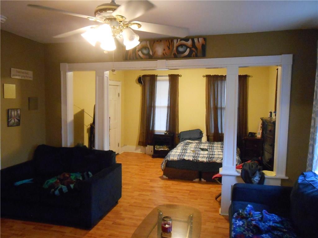 Three family home with two one bedroom units on the 1st floor with porch, large three bed unit on the 2nd floor with a double parlor, eat in kitchen, pantry, and a large porch. Plenty of off street parking for tenants and an extra building in the rear with heat and electricity for storage.
