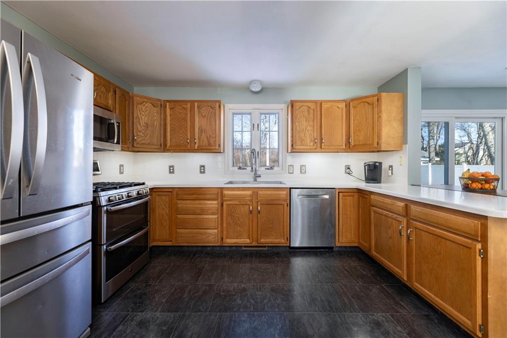 In the heart of Tefft Hill, where charm meets modern comfort, stands a Colonial home just shy of 2,500 square feet. This is a place where warmth greets you at the door and space unfolds with effortless grace. The living room flows seamlessly into the dining area, leading to an open kitchen and family room, where a gas fireplace invites quiet moments and lively gatherings alike. A first-floor laundry room offers ease, while a front room presents endless possibilities—an office, a guest retreat, or whatever your heart desires.