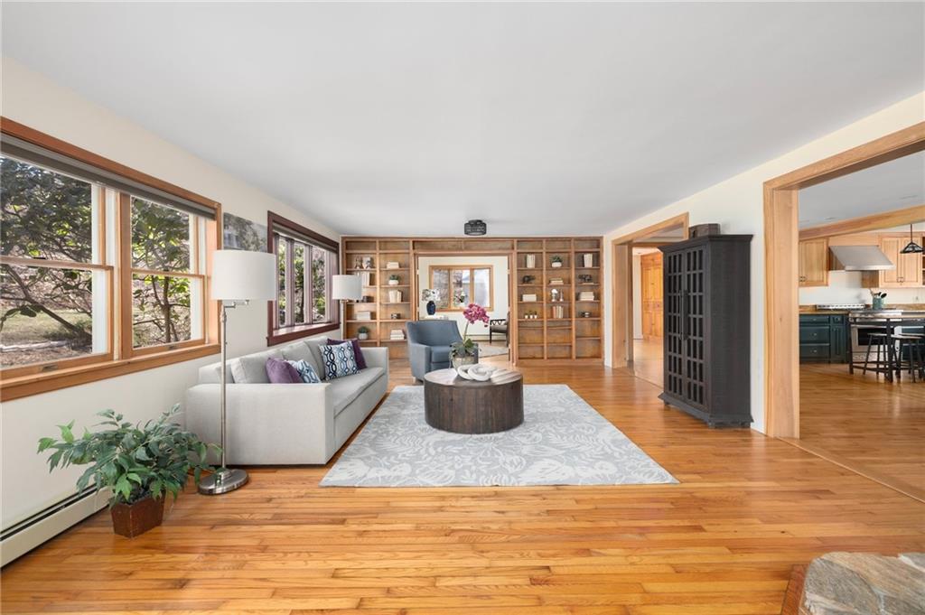 Blending timeless character with modern convenience, this updated historic home lies on two acres within Harmony Village. Surrounded by mature perennials and natural beauty, it’s a private haven just minutes from local shops and amenities. Inside, an abundance of natural light fills the open, inviting layout. Hardwood floors, a spacious living room with a wood stove, and a large dining area create a warm and welcoming atmosphere—perfect for everyday living and entertaining.