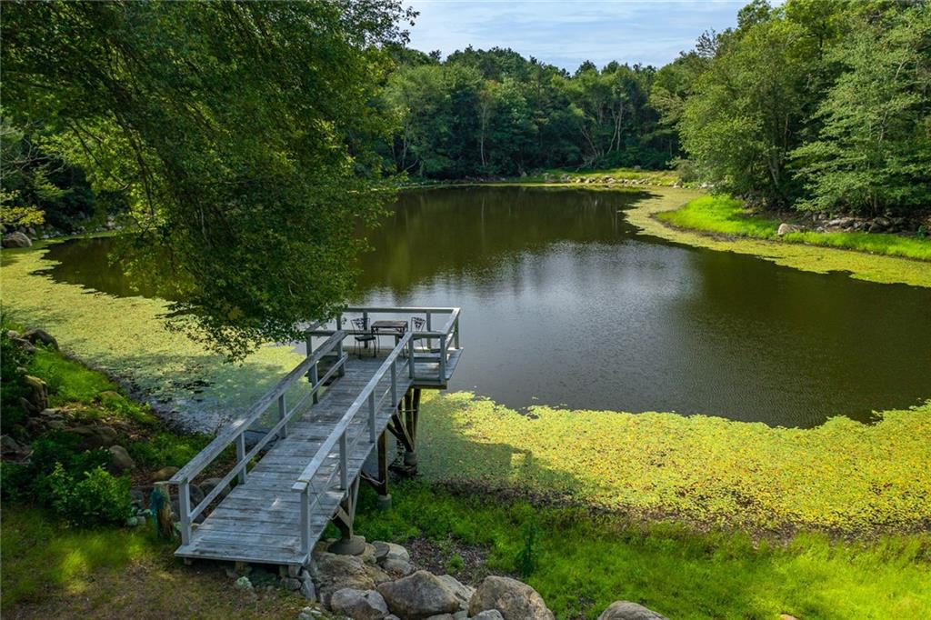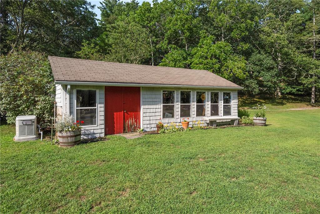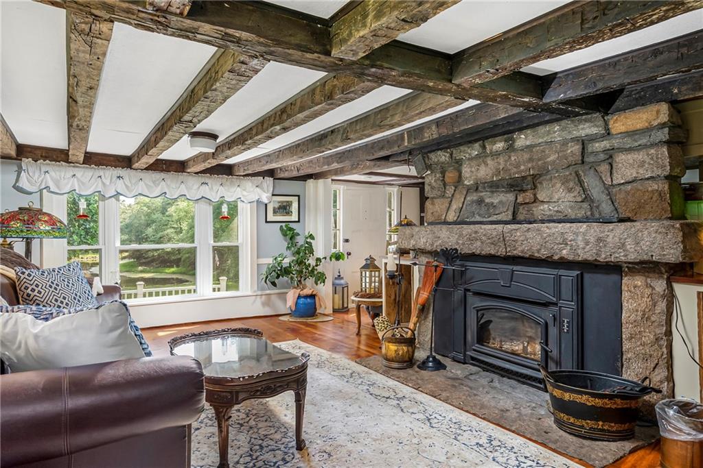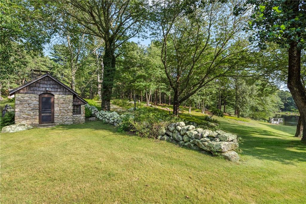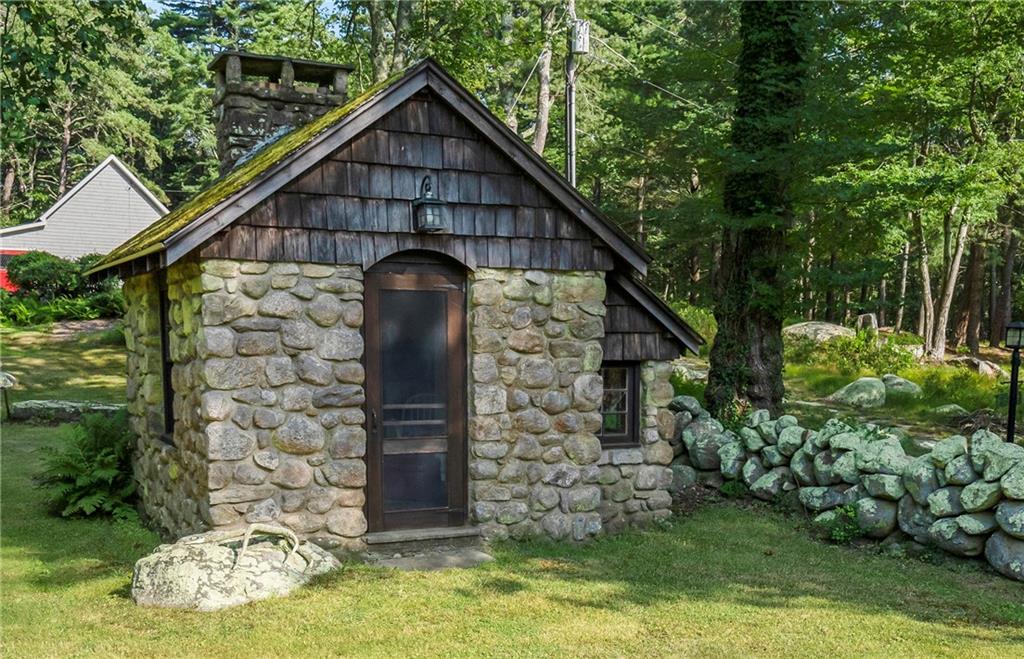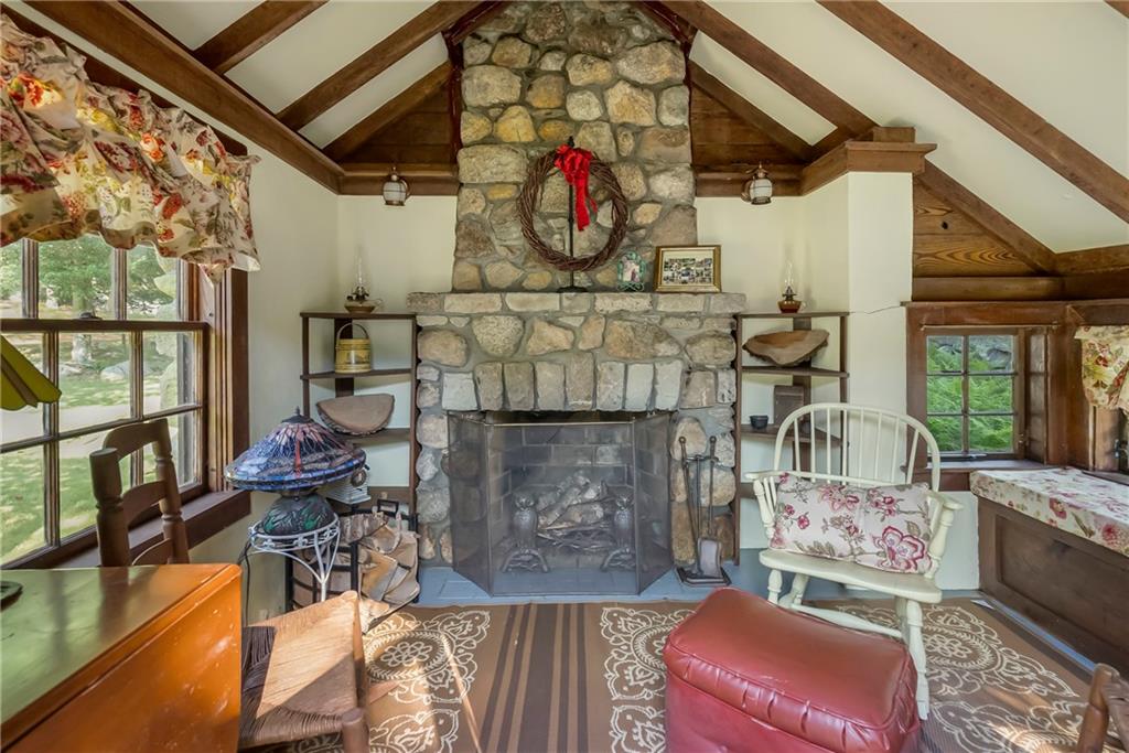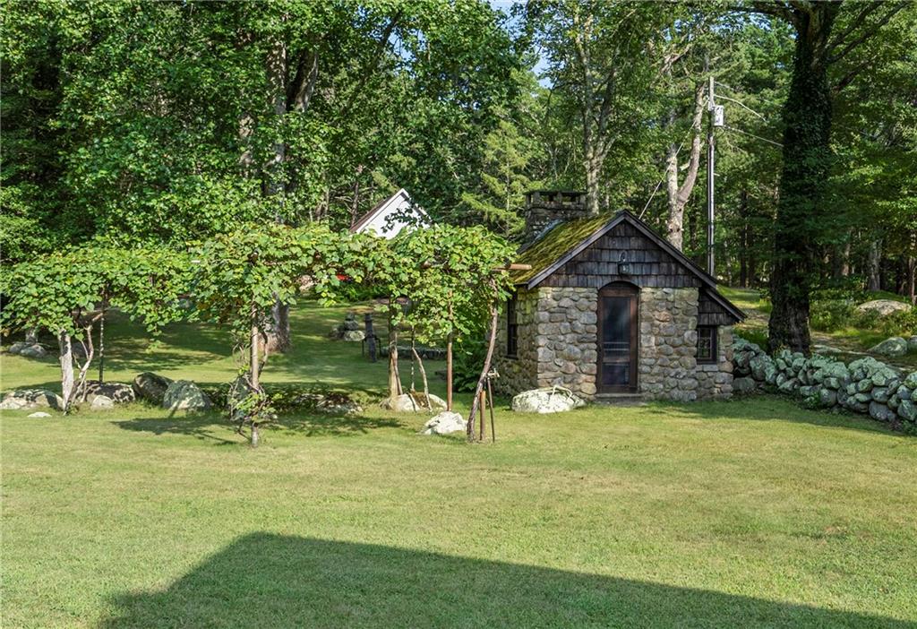 The living room has a wood stove insert in the stone fireplace. Enjoy a daily visit from the blue heron from the 450 square foot master bedroom with an upper-level walkout deck to view the 2 acre spring fed swimming pond. This 4 bedroom, 3 bath home has new windows, recent roof update, new cedar shingles, updated plumbing and a backup Generac 22,000 watt generator that runs up to 2 weeks with onsite propane. A true homestead, there are several out-buildings around this beautiful home. A custom-built stone and cedar playhouse, built in 1939, with its own wood fireplace and electricity, is a perfect place for children (or adults) to escape or connect. There is also a large, refinished horse barn/workshop/studio, another large workshop building useful for whatever you imagine, and a covered wood storage out-building.