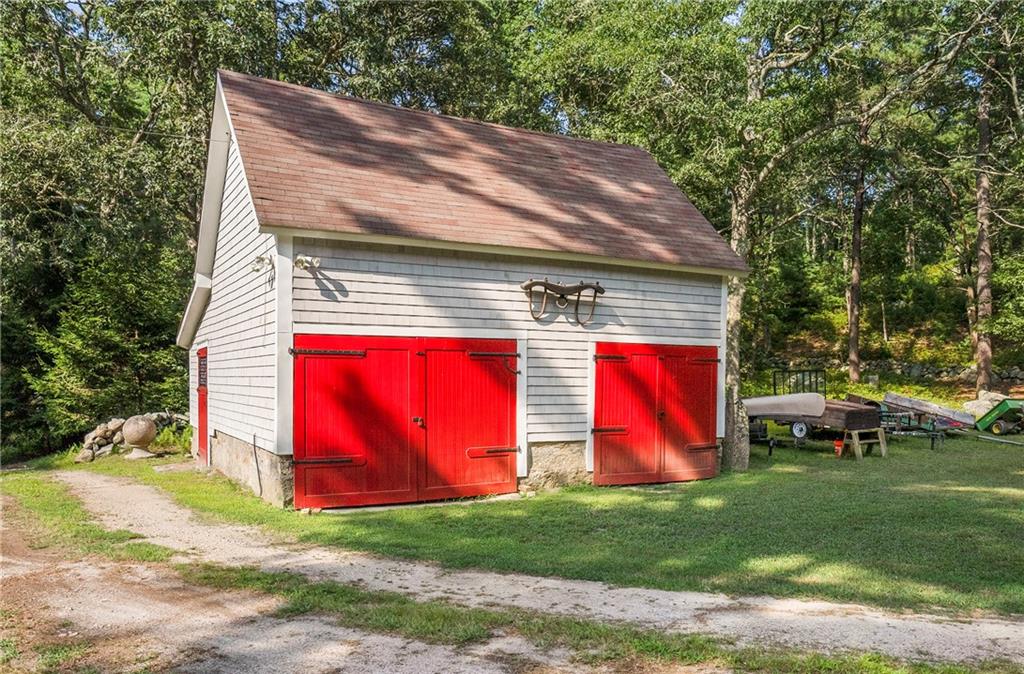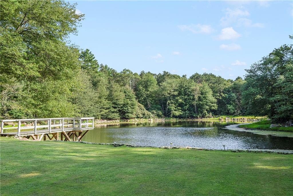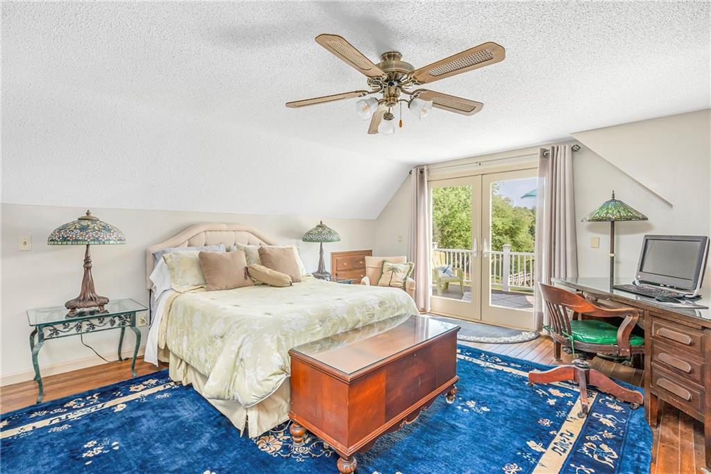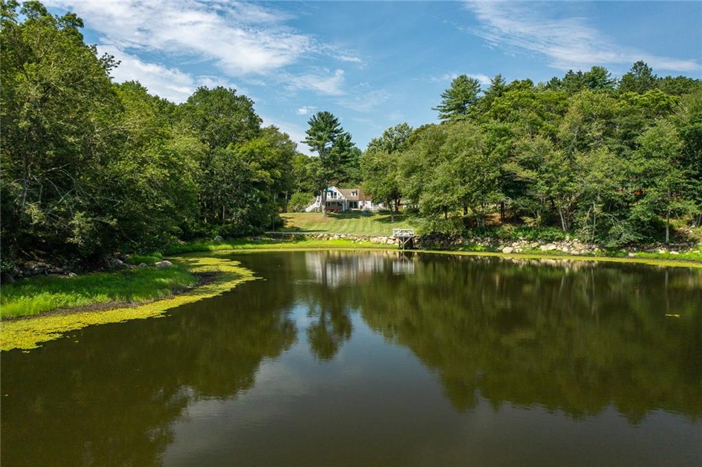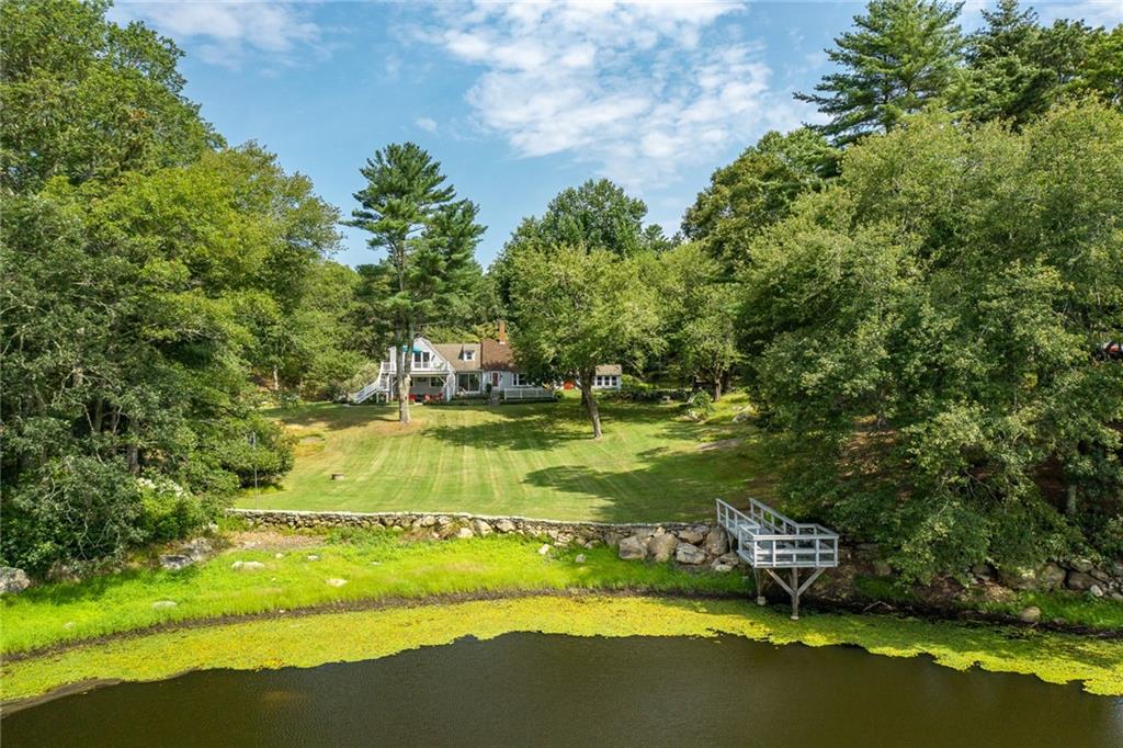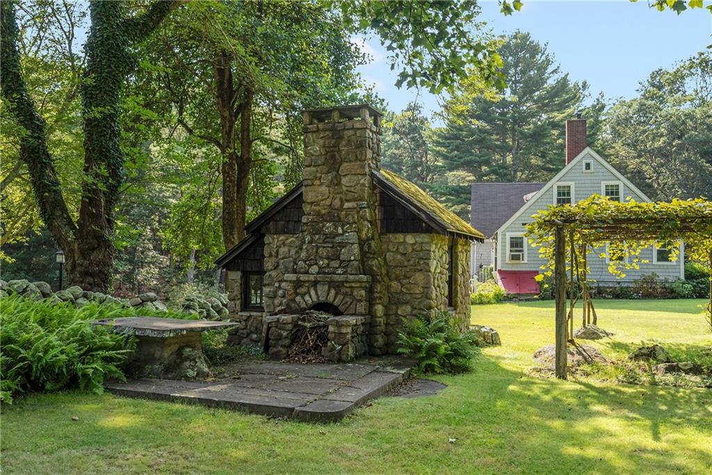 The living room has a wood stove insert in the stone fireplace. Enjoy a daily visit from the blue heron from the 450 square foot master bedroom with an upper-level walkout deck to view the 2 acre spring fed swimming pond. This 4 bedroom, 3 bath home has new windows, recent roof update, new cedar shingles, updated plumbing and a backup Generac 22,000 watt generator that runs up to 2 weeks with onsite propane. A true homestead, there are several out-buildings around this beautiful home. A custom-built stone and cedar playhouse, built in 1939, with its own wood fireplace and electricity, is a perfect place for children (or adults) to escape or connect. There is also a large, refinished horse barn/workshop/studio, another large workshop building useful for whatever you imagine, and a covered wood storage out-building.