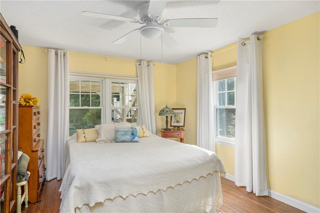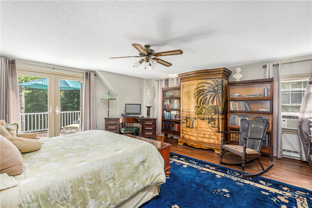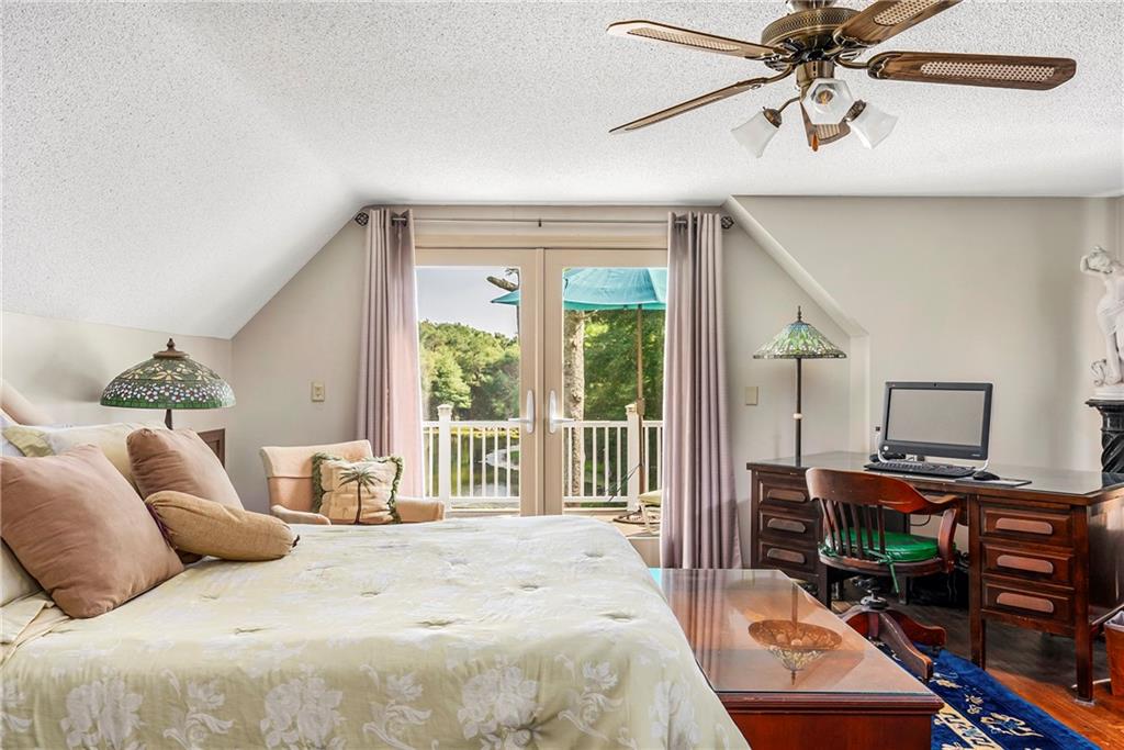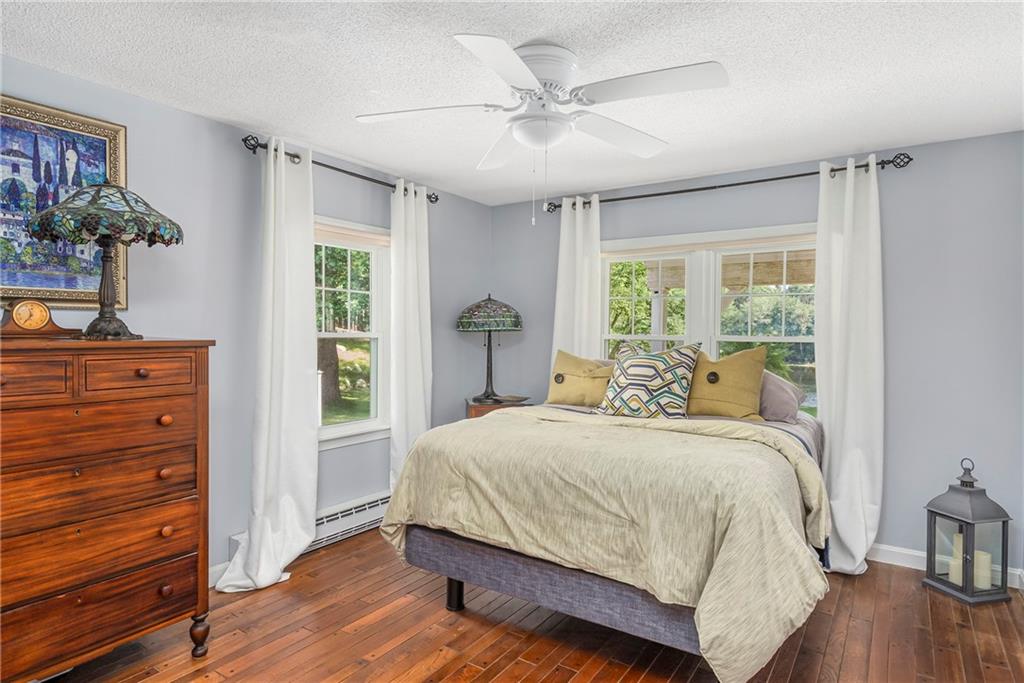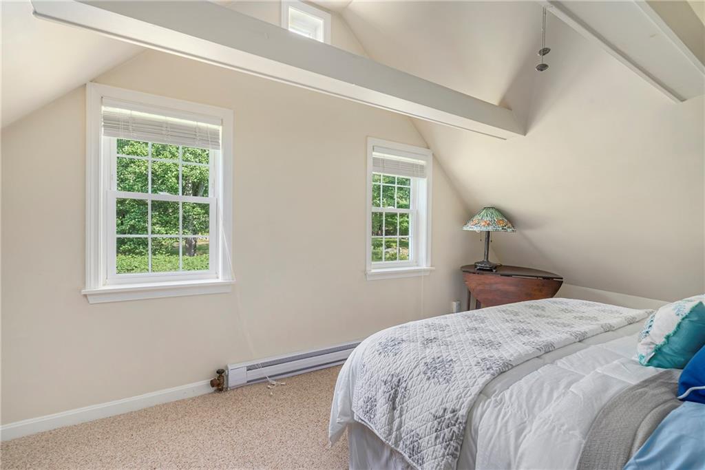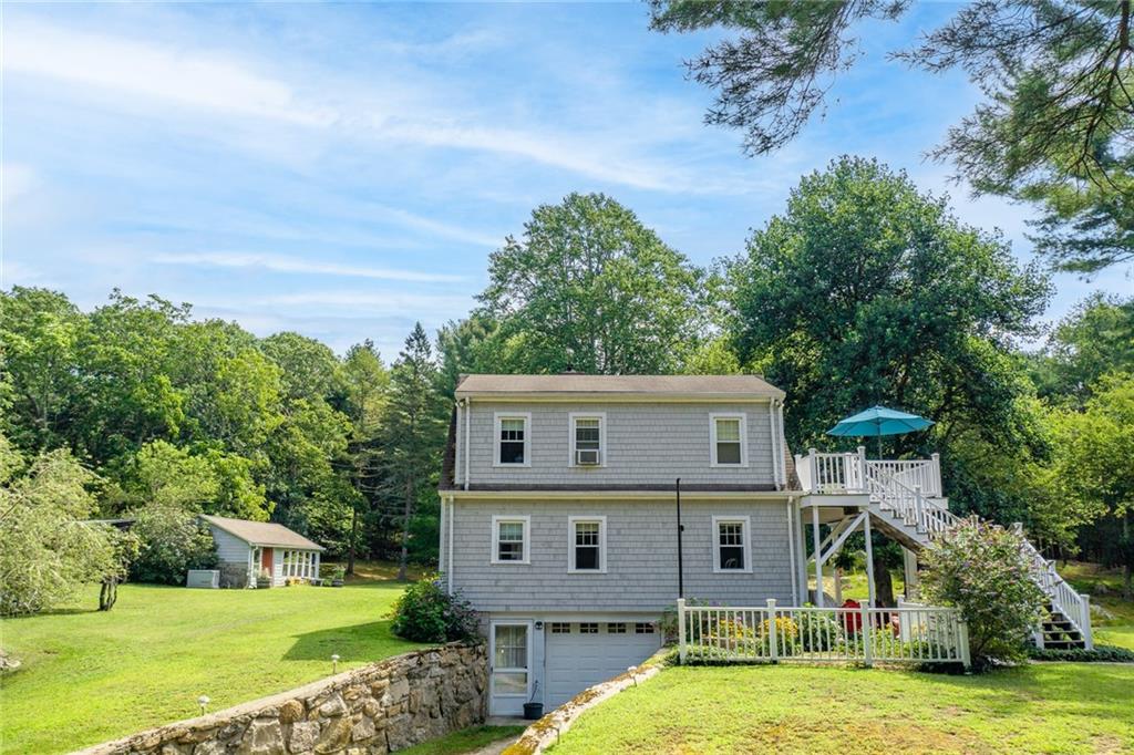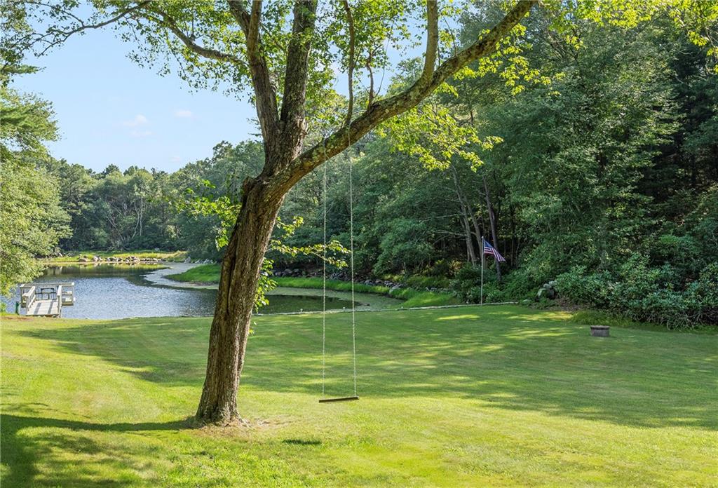 The living room has a wood stove insert in the stone fireplace. Enjoy a daily visit from the blue heron from the 450 square foot master bedroom with an upper-level walkout deck to view the 2 acre spring fed swimming pond. This 4 bedroom, 3 bath home has new windows, recent roof update, new cedar shingles, updated plumbing and a backup Generac 22,000 watt generator that runs up to 2 weeks with onsite propane. A true homestead, there are several out-buildings around this beautiful home. A custom-built stone and cedar playhouse, built in 1939, with its own wood fireplace and electricity, is a perfect place for children (or adults) to escape or connect. There is also a large, refinished horse barn/workshop/studio, another large workshop building useful for whatever you imagine, and a covered wood storage out-building.