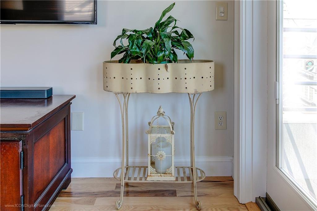 Beautifully renovated condo on desirable historic Thames Street. This classic two-bedroom, one bath second floor unit located in the Yachting Village offers an open floor plan with a custom designer kitchen featuring new stainless appliances, beautiful inset cabinetry, quartz countertops and hickory flooring throughout. Other features include a cozy breakfast bar, large quartz island in dining area and a stunning designer bathroom with an open shower and radiant heat flooring. Take in the amazing sunsets and views of beautiful Newport Harbor from the private balcony while overlooking the heart of downtown Thames Street, just steps from the best restaurants and shops on the island.