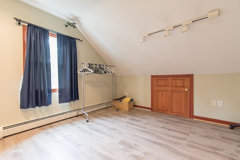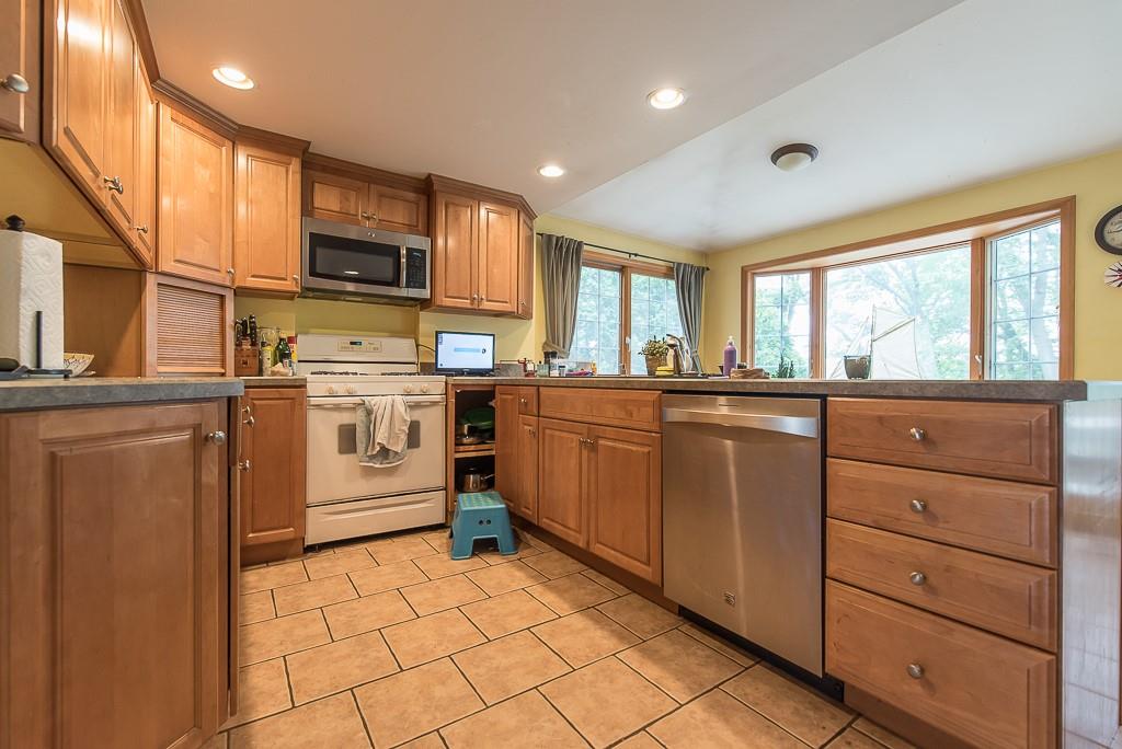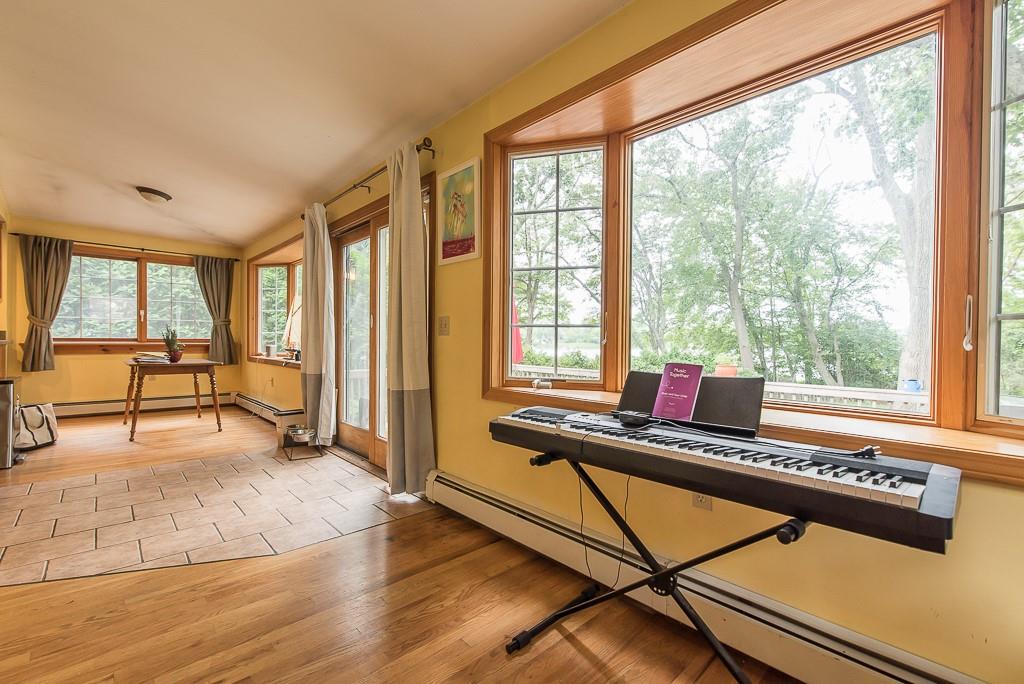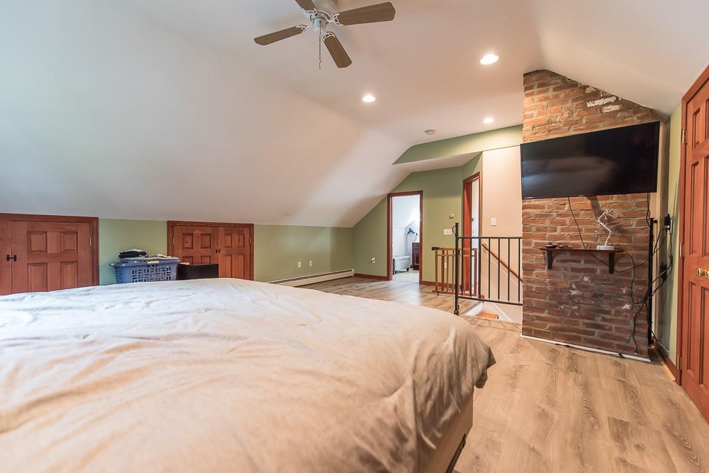 you’ll find the kitchen which opens into the dining room with sliders leading out to the deck and two large bay windows. Both of these rooms provide exceptional views of the pond and allow natural sunlight to pour in. The first floor is finished off with two generous sized bedrooms and a full bathroom. Head on upstairs to the massive master bedroom with en-suite bathroom and additional room which would function perfectly as a home office or sweet walk-in closet. The semi-finished basement will work well as a media room or play area. Grab your kayaks and paddle boards to begin your new lifestyle today!