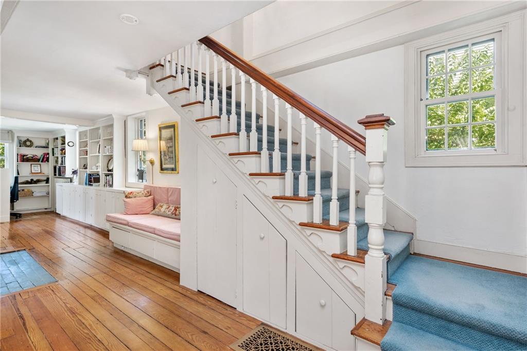 Highlights include a fabulous new custom kitchen and English cottage garden and patio designed by Katherine Field & Associates. Gracious rooms for entertaining include the sun filled living room, dining room and kitchen, a cozy reading room with wood burning stove, high ceilings and beautiful floors. Ample room for family, guests, or work productivity with 4-5 bedrooms, office/den, spacious 2nd floor laundry room. Central A/C and Generator. This quiet neighborhood is a short stroll to shops, restaurants and cultural activities. The Point has the largest collection of colonial homes in the country, this neighborhood is enchanting in all seasons.
