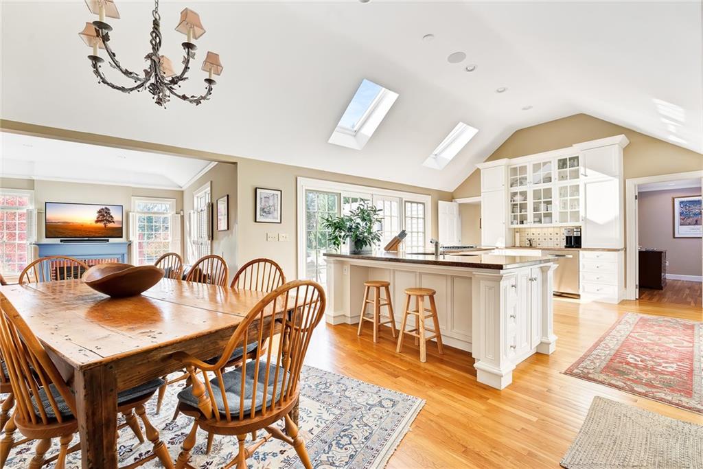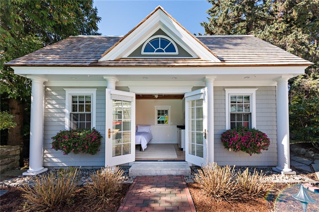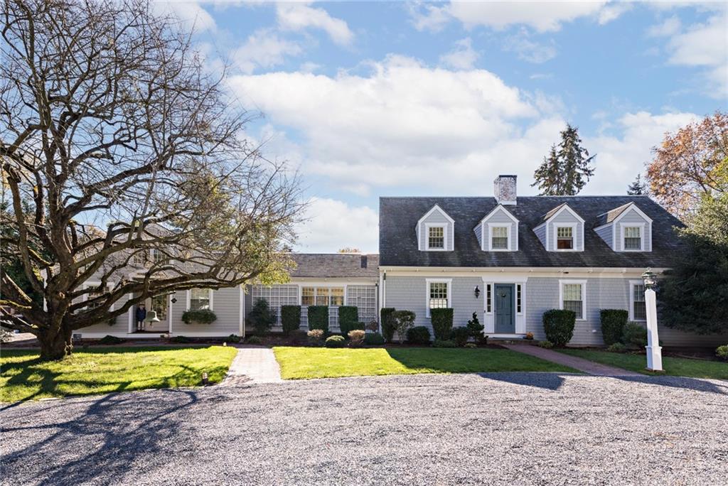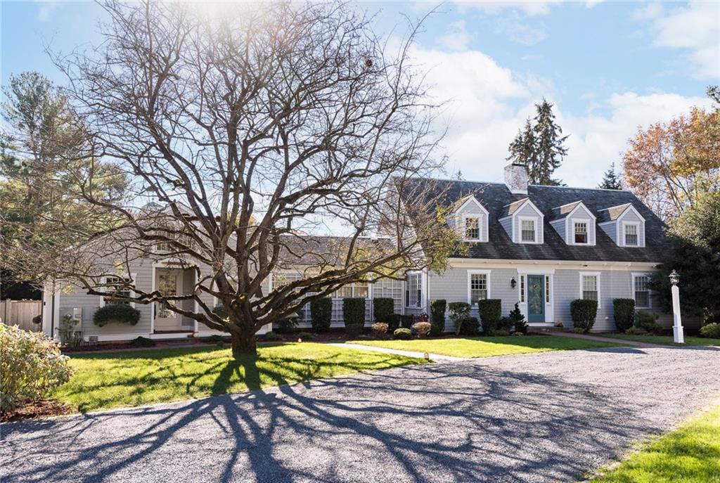 Quintessential New England style at its finest! Situated on 1.5 private and pristine acres on beautiful Adams Point, this 4-bedroom, wood shingled Cape Cod boasts craftsmanship, elegant conveniences, and total serenity. The first floor includes an eat-in chef’s kitchen with granite countertops and stainless steel appliances which opens into a welcoming and cozy family room. The dining room is on the other side of the kitchen, and flows seamlessly to the living room, which is ideal for gathering and entertaining. An office and library are also on the first floor, as well as a guest suite that can easily be a first floor primary bedroom if one prefers it.