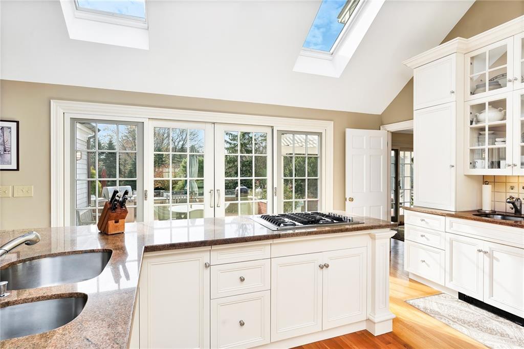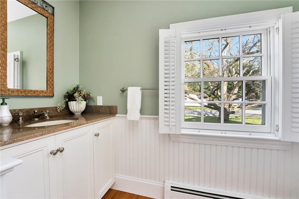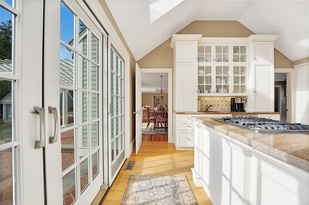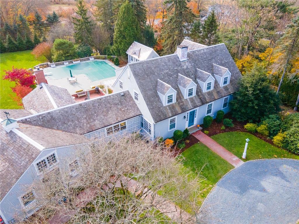 The second floor includes 3 bedrooms, 2 baths, and laundry room for ultimate convenience. The second floor primary bedroom has a generously sized walk-in closet, and updated, en suite bath with custom tile, marble and woodwork. Outside is a private oasis, replete with wonderful spaces for entertaining: an incredible outdoor kitchen with Viking appliances, a generously sized, heated, gunite swimming pool, a fabulous pool house with kitchenette and full bath, and beautiful mature landscaping. Barrington is home to award winning public schools, Barrington Beach, Barrington Yacht Club and marinas; Rhode Island Country Club w Donald Ross course, great restaurants and shopping. Providence is 12 miles away, and Boston is an hour by train.