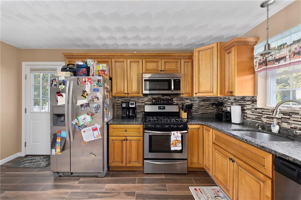 The sliding glass doors open up to a deck with an above ground pool and private back yard. Enjoy the privacy of a wooded back lot, large yard and 6 car driveway. Don’t let this house get away! This home is subject to the seller finding suitable housing.
