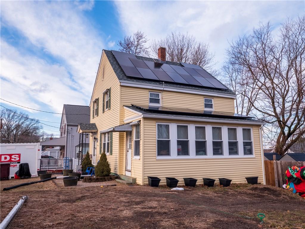 Adorable home on the Blackstone Mass border with an open concept kitchen and great sunroom spanning the length of the home. Double lot with amazing yard and potential, this home is energy efficient and the seller will pay off and include the solar panels giving you massive energy savings year after year for 30 plus years at no cost to you! Many charming features in this old house, beautiful moldings and woodwork throughout. Charming, spacious kitchen includes plenty of storage, chic open shelving for displaying your collectibles and shiny new stainless steel appliances and natural gas connected. Fresh carpet upstairs and 3 ample bedrooms.