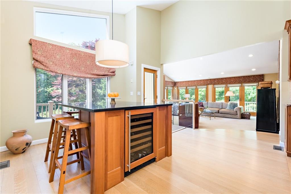 In the living room, family room and kitchen you will find multiple glass doors and 6 foot windows allowing for natural light on all sides of the home. The updated kitchen features cherry cabinetry, granite counter-tops and a limestone backsplash. The stainless steel appliances boast the high end brands like sub-zero, wolf, miele, and fisher paykel. The attention to the details of this home is without comparison. You will find 4” select white oak hardwood floors, with marble inlay in the foyer, as well as marble fireplaces, and bathroom floors and counters. The newly replaced decks are sheathed with garapa gold hardwood and deck rails and posts are all mahogany. The 3.2 acre private lot is an oasis onto itself with extensive landscaping and stonework designed by landscape architects. Although the property has been sited to enhance the feeling of privacy, you are conveniently located minutes to the highway, and all that East Greenwich has to offer.