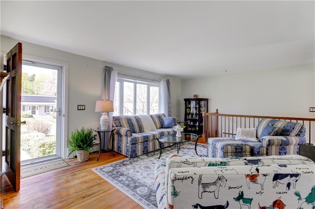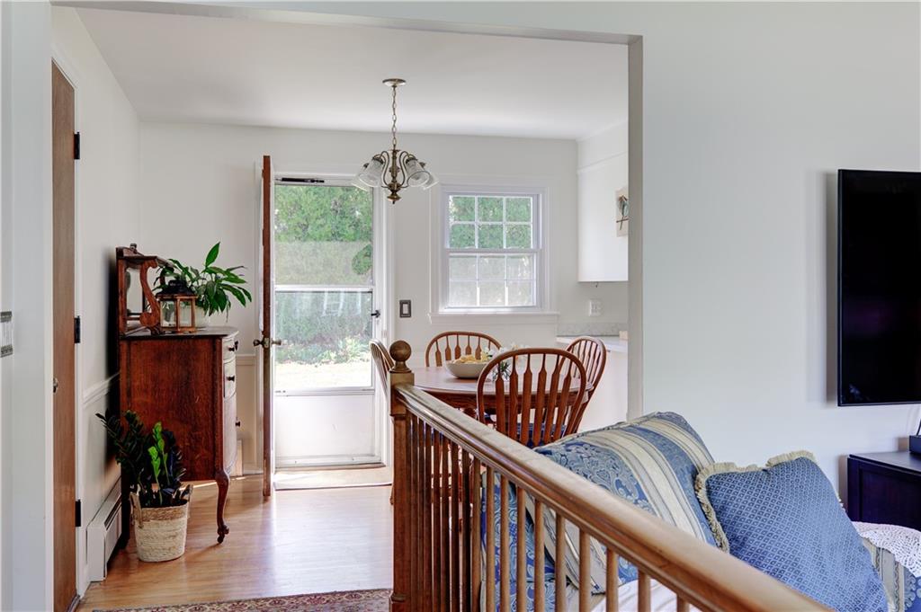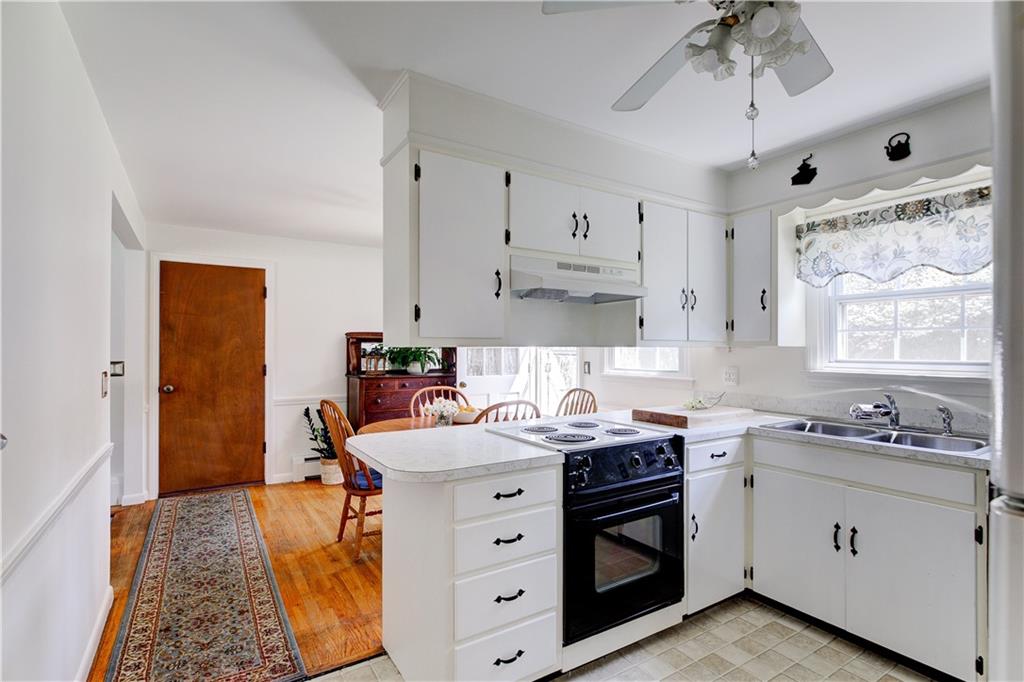 HIGHLY SOUGHT AFTER ONE LEVEL LIVING! This beloved home is situated on a cul-de-sac, walking distance to Portsmouth High School. Step in to find a wonderful, welcoming space. A serene living room with fireplace and hardwood floors. A light, bright kitchen and dining area that open out onto a patio and large private backyard with charming mature plantings.
