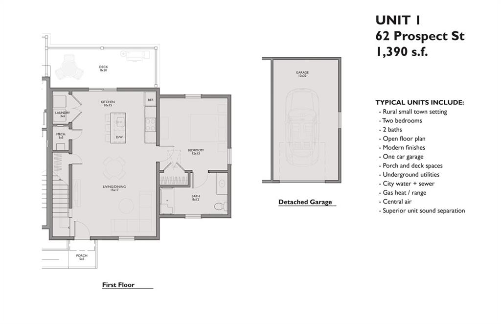 Be the first to own a brand new construction condominium just steps from downtown Westerly and the Pawcatuck River. The opportunity to live in a newly constructed two bedroom, two bathroom home awaits at Prospect Place, where a modern, open floor plan is dressed in stylish finishes, with hardwood flooring throughout, stainless steel appliances, central air conditioning, deck, one car garage, and more. Unit 1 offers a rare first floor master bedroom a second floor study/bonus room and a potential winter water view of the Pawcatuck River. Condos at Prospect Place enjoy the ease of city water, gas, and sewer.