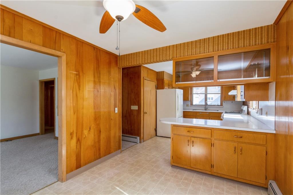Two of the bedrooms have hardwood floors and the third is carpeted with hardwood underneath. This unit also has a full bath and AMAZING closet/storage space. The upstairs second unit, walk right into your open kitchen area that leads into the dining area with a dry bar/storage area. Living room and both bedrooms are hardwood. Off the larger bedroom there is unfinished attic storage space. Again you have a full bath and AMAZING closet/storage space in unit! Outside offers you off-street parking, some greenery with a fully fenced yard, lower level porch and patio space/ upper deck for upstairs unit.