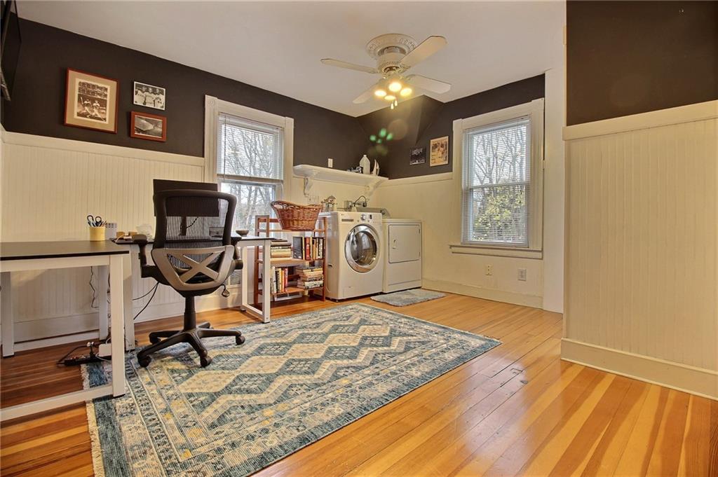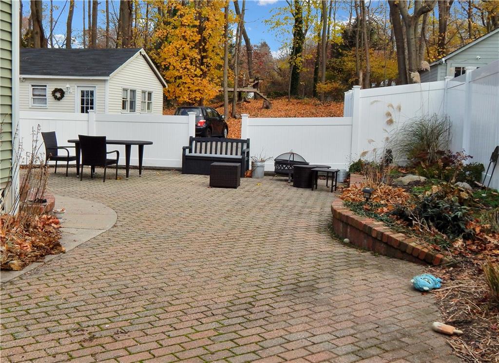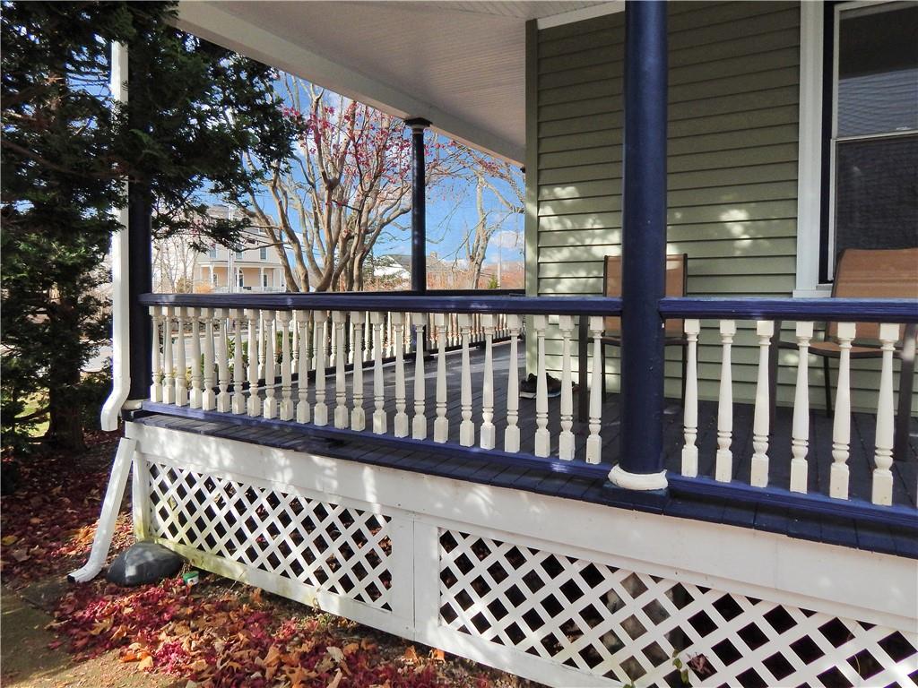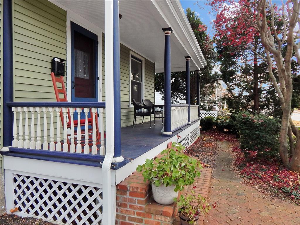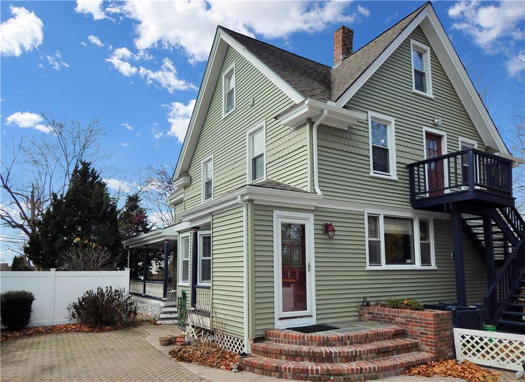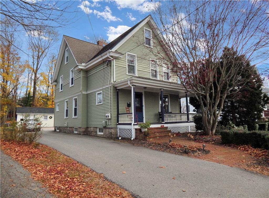 The second level includes 2 bright and sunny bedrooms, the laundry room and a generous sized home office and a full bath. Walk up to the third level to a private master suite with a large full bath complete with plenty of closets and built-ins. This home has oodles of storage and closets! The detached 1 car garage has an extra bonus room and a beautiful hardscape patio with lovely perennials which is fenced in for privacy. The home was newly sided in 2021 for carefree maintenance. Enjoy your morning coffee or evening cocktail on the wrap-around porch. A short stroll to the renowned Elm Street filled with beautiful historic homes and downtown Westerly. This location is ideal to walk, bike and is close to a public boat launch. What a perfect opportunity to be close to Misquamicut and Watch Hill beaches or walk to the local coffee shop and downtown amenities. Come visit this well loved home.