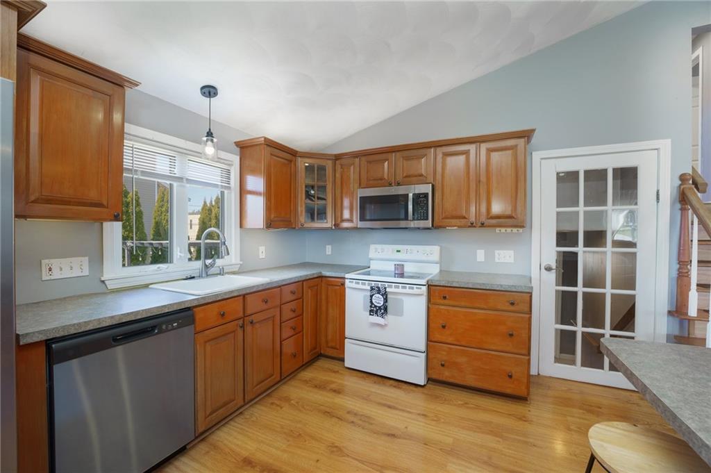 Enter right into your open living room, kitchen & dining area w/vaulted ceilings, island and recessed lighting! A few step UP are three good-sized bedrooms and large bath w/double vanity! A few steps DOWN and you have a separate family room w/nook for possible kitchenette, another bedroom and another full bath! Need a 5th bed? The family room is it! The lower-level has lots of room for storage, a workbench, etc. Outside you’ll love your fenced-in backyard/side yard, stone patio w/pergola and lots of grass for ‘summertime activities’. Toss in gas heat, town water/sewer, vinyl siding, TWO driveways (corner lot) and only 60 seconds to Rte 6 (about 5 min to 295) and you’ll fall in love! DON’T WAIT ON THIS ONE! Set up your private showing ASAP! SUNDAY OPEN HOUSE CANCELLED!