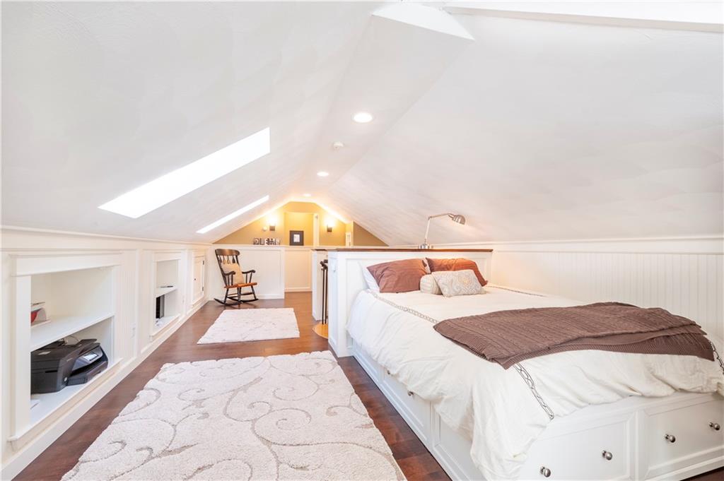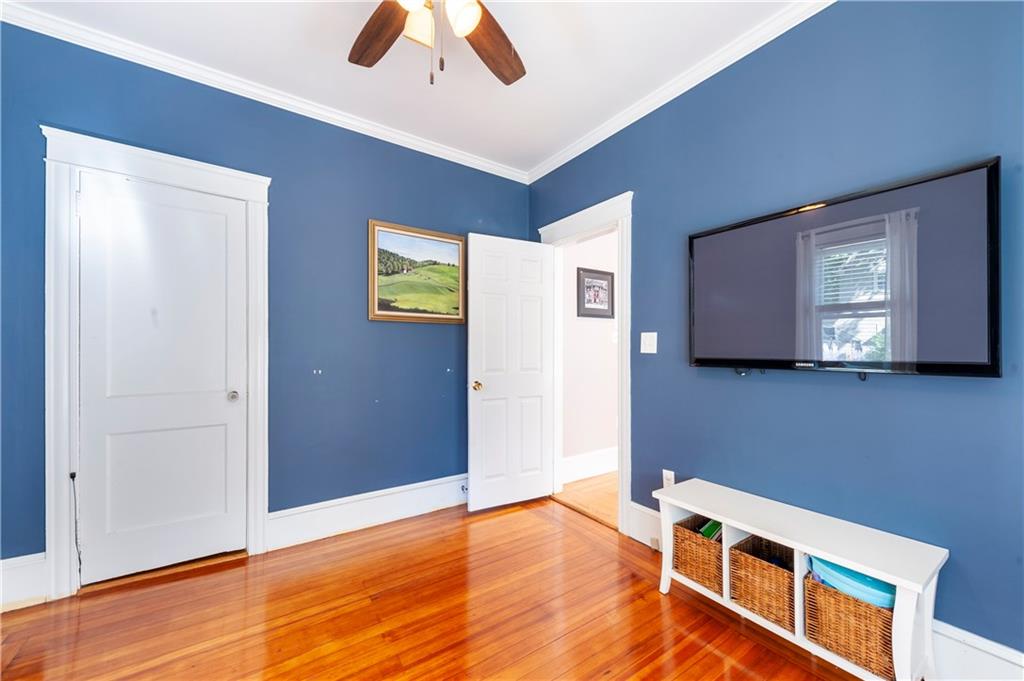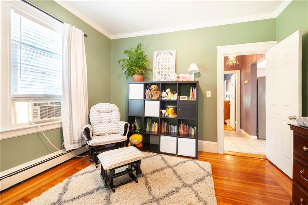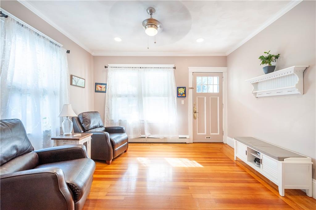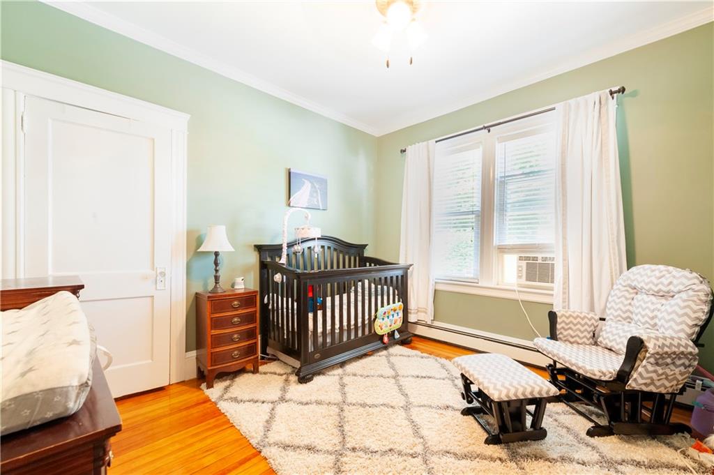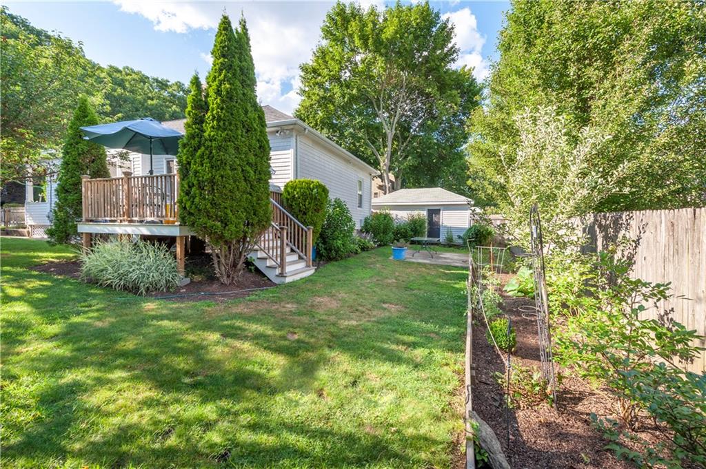 A very spacious four bedroom one and half bath Bungalow in desirable Elmhurst neighborhood of Providence. Spiral staircase that leads to a full Master Suite with skylights, lavette/w skylight, walk in closet and recessed lighting. This home also features crown moldings, cedar closet, hardwoods, eat in kitchen/W island, tile floor, recessed lighting and a deck with a gas line to hook up to your grill (deck installed in 2017) off the kitchen to enjoy cook outs. Roof installed in 2011 with one layer, replacement windows, vinyl siding, new hot water tank installed in 2017, new furnace installed in 2016 with three zones and 200 amp service.
