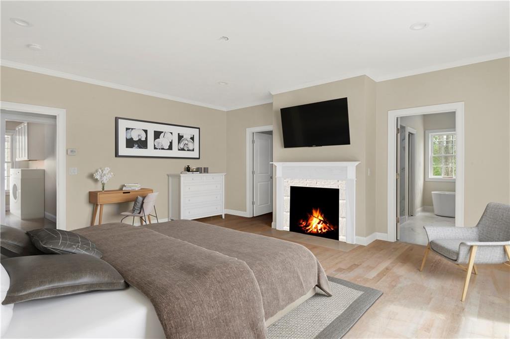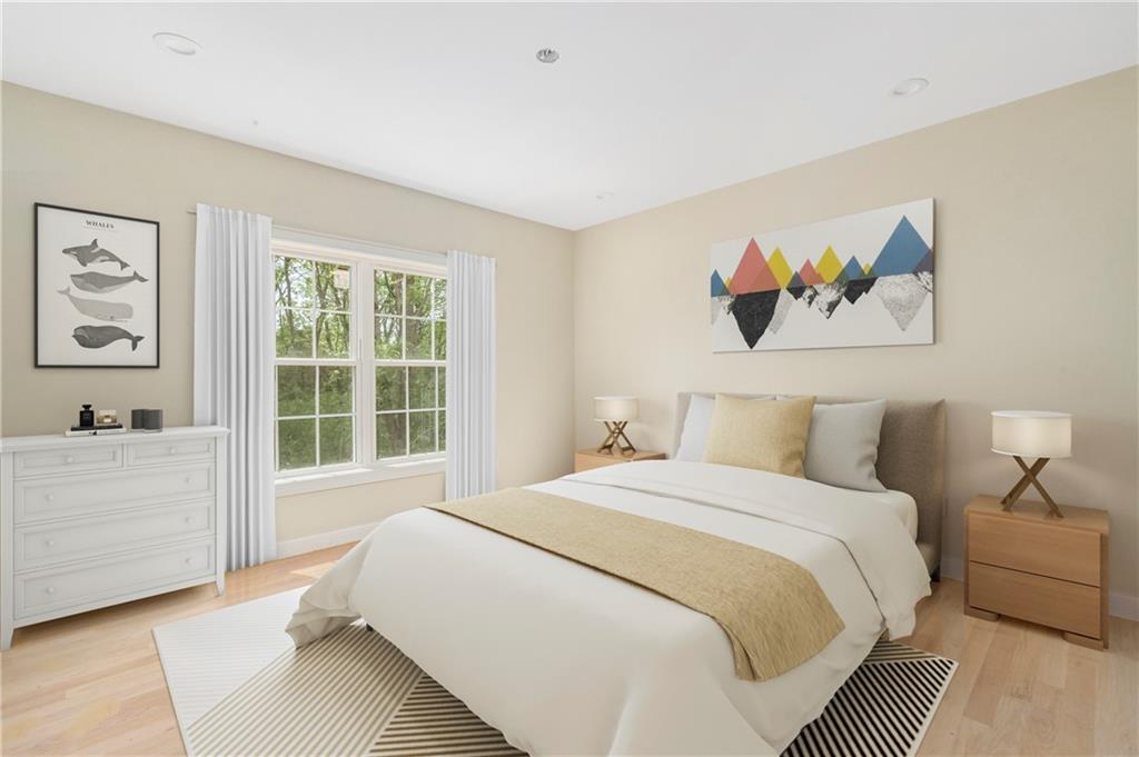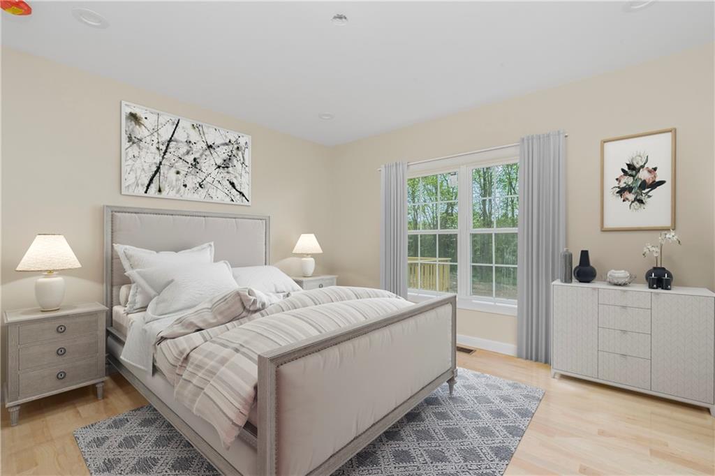 Seamlessly blended dining area and kitchen are an entertainer’s delight. Enjoy cooking your favorite meals in this designer gourmet kitchen; truly a chef’s delight. The dining area offers plenty of space for your dining room table, hutch and buffet. From the dining area observe the slider to the back deck. End your day on the back deck while appreciating the beautiful sunset and natural surroundings. With crown molding, fireplace and a 12 X 12 impressive walk in closet this master bedroom is magnificent. Spacious tile shower and soaking bathtub are impressive features of the en suite master bathroom. The additional two bedrooms are adequately sized offering double closets and recessed lights. Complementing the open floor plan are traditional oak hardwood floors and a pleasing color palette throughout this impressive house. Let’s not forget about the first floor laundry, half bathroom and 2 car finished garage. Opportunity for extra finish living area awaits you in the lower level. Kitchen appliance allowance to buyer. House is virtually staged. Call to schedule your private appointment.