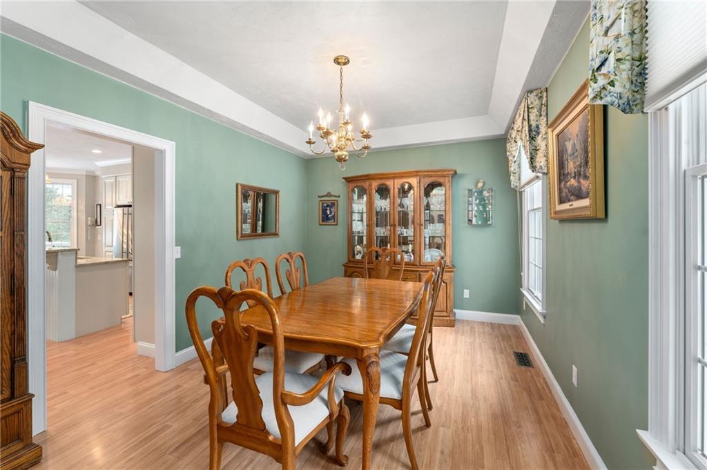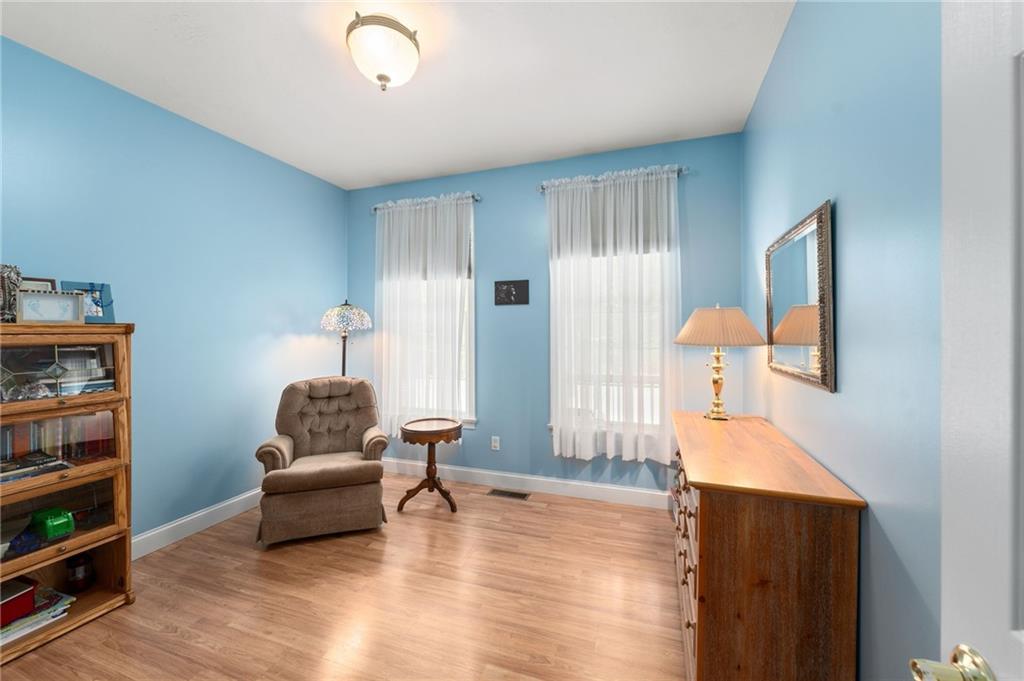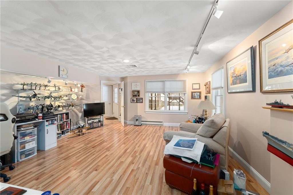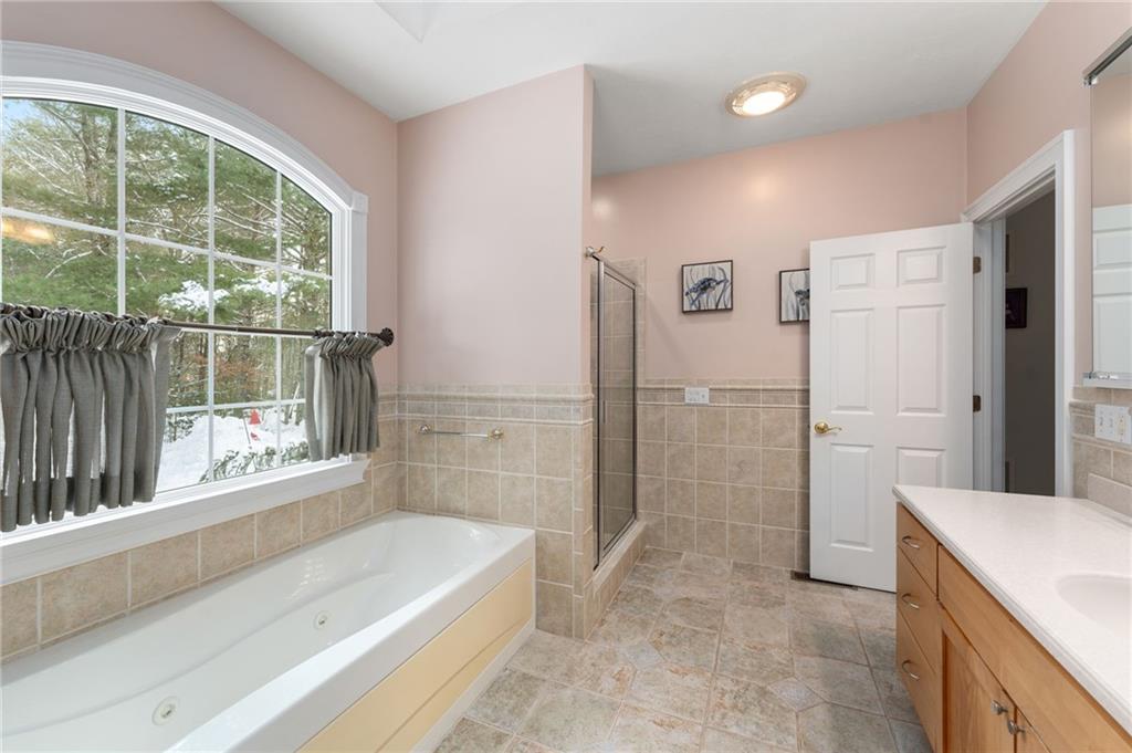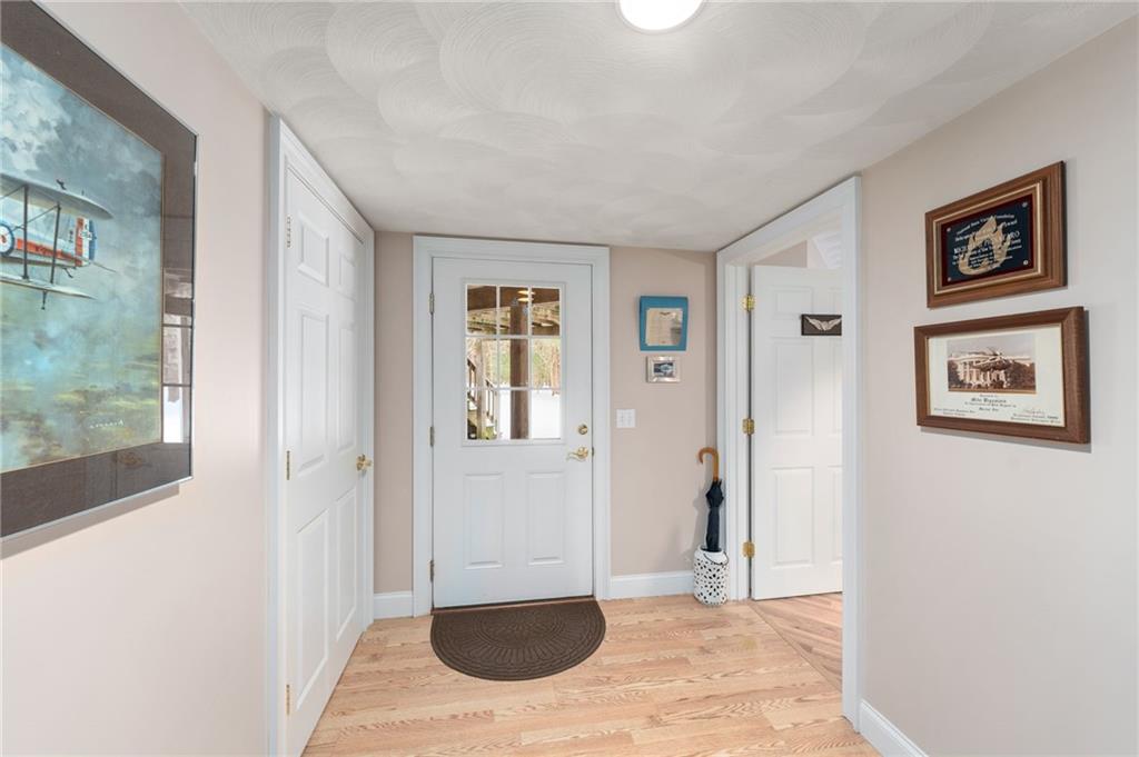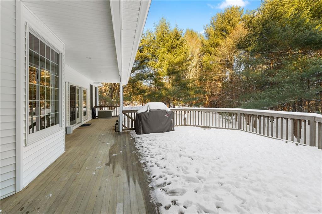 A rare opportunity to own this custom-built executive-style ranch set on a stunning 2-acre lot, abutting 800+ acres of one of Rhode Island’s largest protected wildlife areas. Nestled on a quiet country road yet moments from the highway, this home offers the perfect balance of privacy & convenience—just a short drive to both the city & the beach. Designed for comfort & elegance, the bright & airy interior boasts soaring cathedral ceilings, a striking fireplace in the main living area, & large windows that flood the space with natural light. The open-concept kitchen & living areas are ideal for entertaining, featuring a large island, granite countertops, custom cabinetry, & stainless appliances.