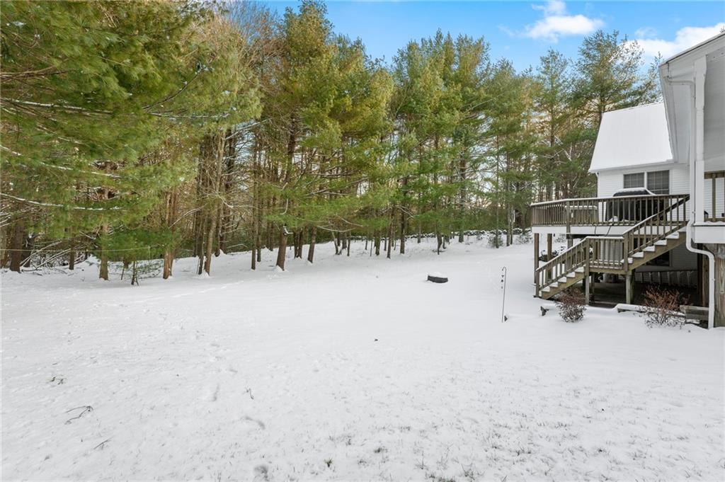 The spacious primary suite offers cathedral ceilings, while two additional bedrooms on the first floor are serviced by a full bath. A guest bath & first-floor laundry add to the home’s convenience. A 420 sq. ft. bonus room above the garage provides flex space for a home office, gym, or guest suite. The partly finished full walkout basement offers even more possibilities. Thoughtful upgrades include a mahogany porch & deck, radiant heat garage floors, leaf filter gutters, a generator for essential appliances, & a recently serviced oil furnace with dual 250-gallon tanks. Additional features include a pellet stove, three air handler units—one recently replaced—& a well-maintained septic system recently inspected & pumped. Don’t miss this exceptional home in a breathtaking natural setting!