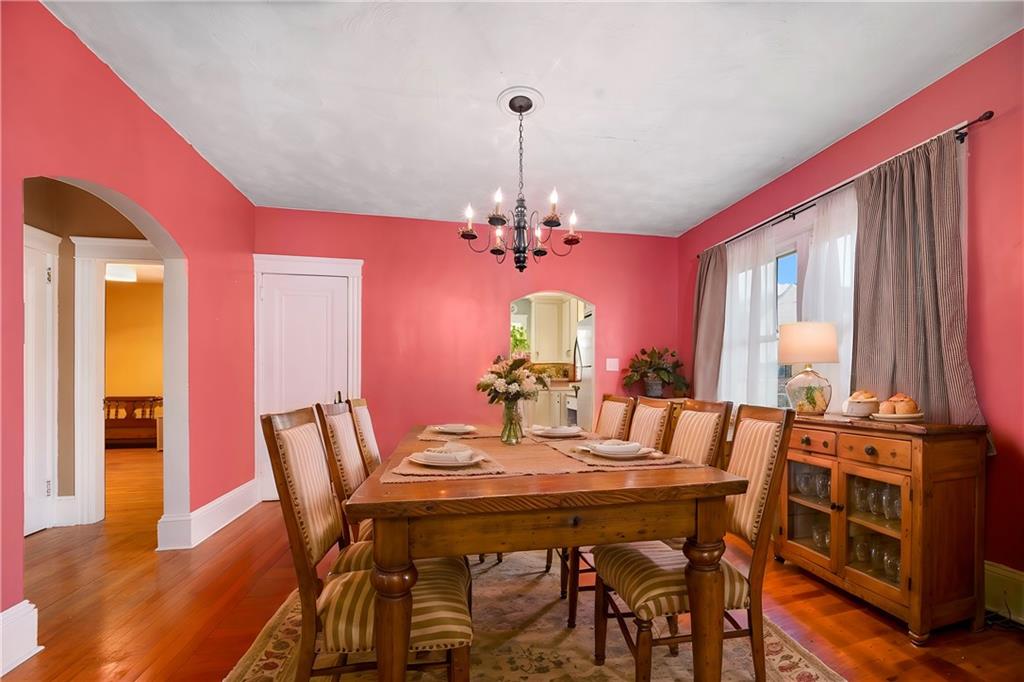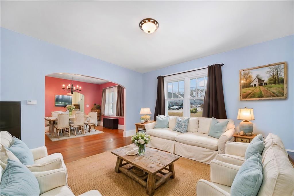 Step inside to find a bright and airy living room that seamlessly flows into a large dining area, ideal for gatherings. The kitchen combines modern convenience with eclectic charm, offering the perfect space for preparing family meals.