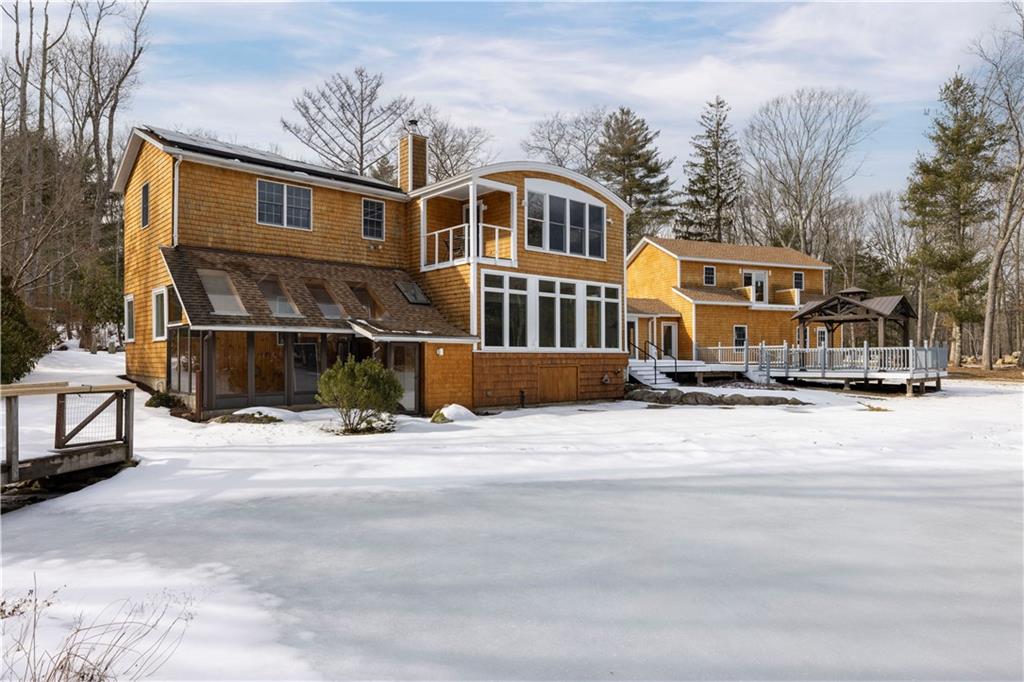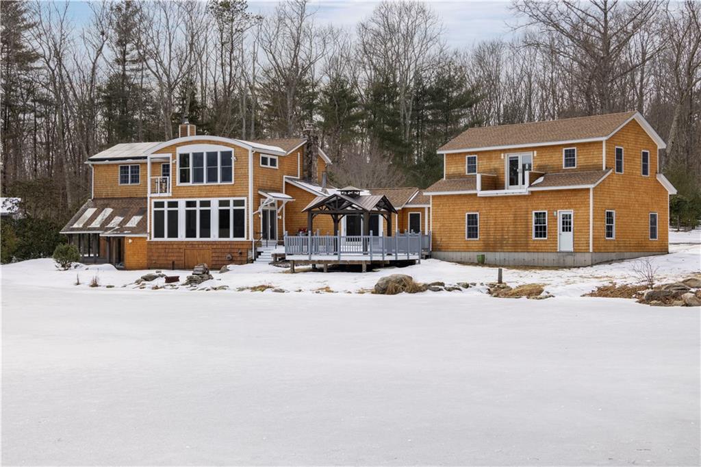 Step inside to discover the many renovations throughout including a new 3-car garage with bonus room above, a breezeway, refurbished hardwood floors & trim work, freshly painted walls that includes details such as a custom railing. The heart of the home is the kitchen, which is sure to inspire your culinary creativity. Gather around the wood stove or fireplace in the inviting open & light-filled living area. Below you’ll find an enclosed 3-season sunroom, a perfect area for morning coffee. The outdoor features are equally impressive, offering a serene escape with a beautifully landscaped front and back yard and solar panels. Enjoy alfresco dining on the deck overlooking your pond, or simply unwind out back by the fire pit. Property is equipped with A/C and a second floor washer and dryer. This home is a true gem, offering a harmonious blend of style, functionality, and outdoor enjoyment. Minutes to gas, grocery and 95, don’t miss the opportunity to make 80 Browns Corner Rd your new address.
