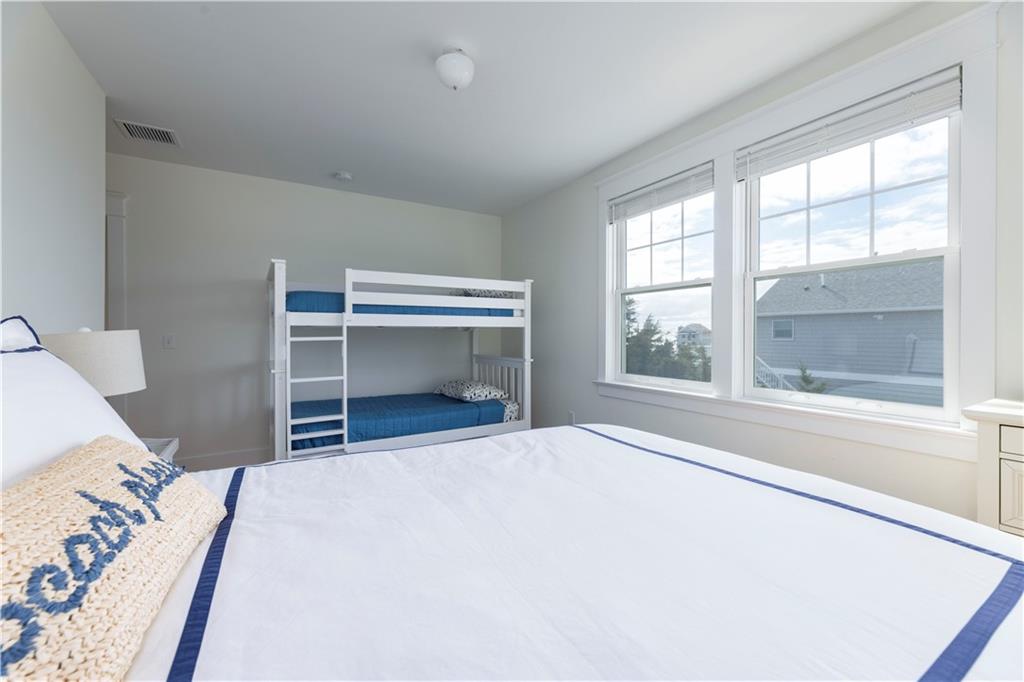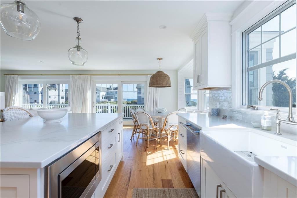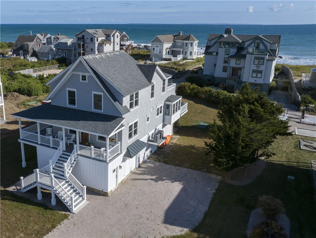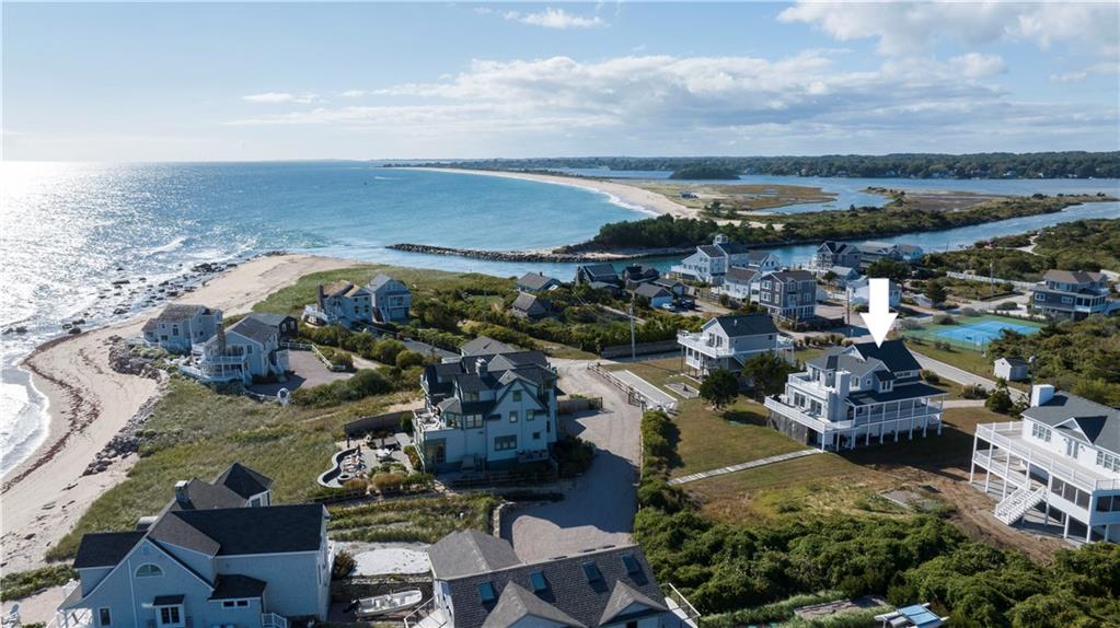 The kitchen offers ultra extravagance with Thermadoor appliances, custom cabinetry and exquisite quartz countertops with an expansive island. Adding to the perfection is a bar area with a beverage refrigerator with plenty of cabinetry/counter space for an entertainment bar, plus a gas fireplace to enjoy seaside peace all winter long. Architecturally designed to relish the beauty of this lovely area with vistas of the Atlantic Ocean and beyond to Block Island along with views of Quonnie Pond. There is a fantastic front deck to enjoy the views of Quonnie Pond and relish gorgeous sunsets, and an expansive wrap-around deck facing the Atlantic Ocean off the kitchen perfect for sunbathing, outdoor barbeques and much more. The upper level has a primary bedroom suite and all the bedrooms can enjoy an exceptional deck with an abundance of outdoor living to enjoy this piece of heaven. The most amazing amenity is walking out your door to a path to West Beach where you can enjoy the beauty of the ocean with private association access. This seaside treasure is one of 14 homes in this special enclave- tennis-pickleball & a short walk to Quonnie Pond to paddle board-kayak-fish & clam.