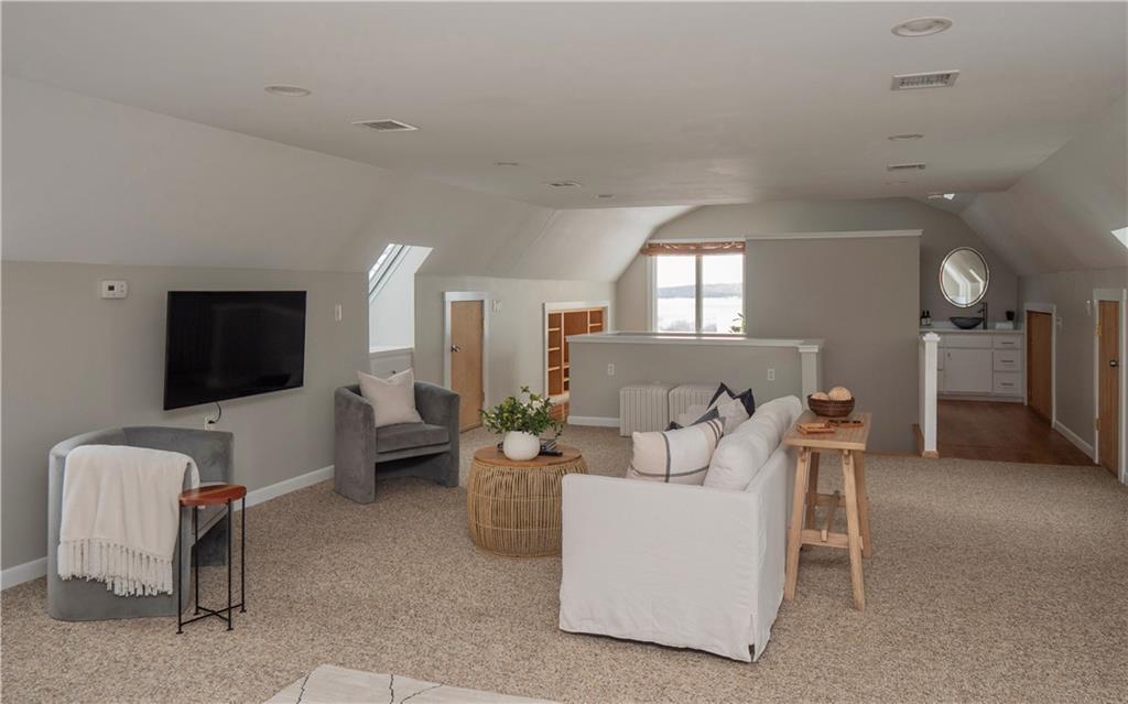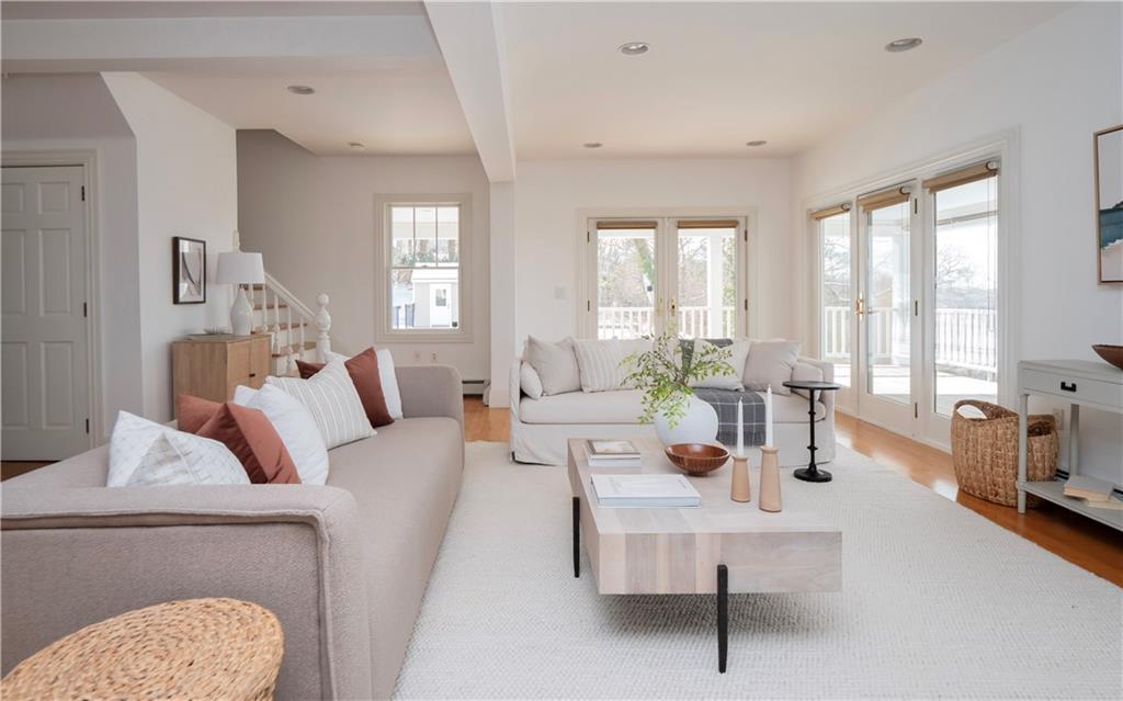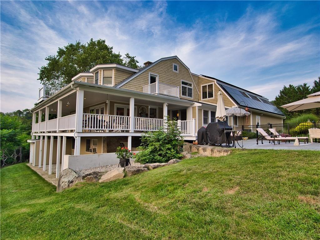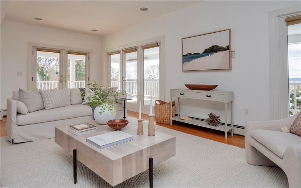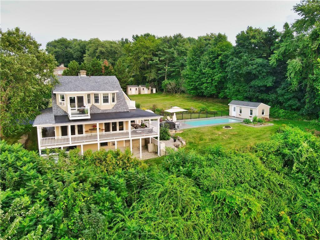 OPEN HOUSE CANCELED. Welcome to 81 Hooper Street! This charming residence is situated on a .88 acre lot on a quiet dead-end road in North Tiverton. It boasts 3 bedrooms and 3.5 bathrooms. The expansive central living area is flooded with natural light and features stunning water views, complemented by sliding doors that lead out to a wraparound porch.