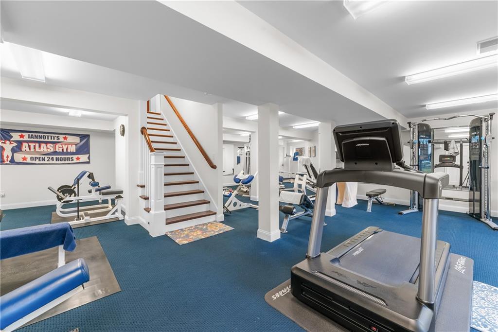 • Basement: Full, Interior and Exterior, Finished, Playroom, Storage Space, Utility, Workout Room