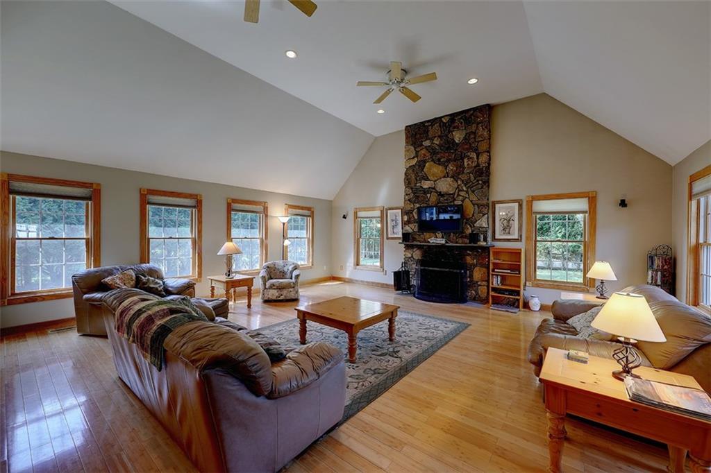 Remarkable offering in Green Hill, 3/4 mile to the gorgeous waters and shoreline of Green Hill Beach. Young 4 bed, 2.5 bath custom Cape with open front porch to sit and relax after a day on the Pond or at the beach. Generous kitchen, with maple cabinets and granite counters, has large dining area and open to dramatic vaulted great room, with stone fireplace and plenty of over-sized windows. Separate living room and distinctive bamboo hardwood floors throughout.