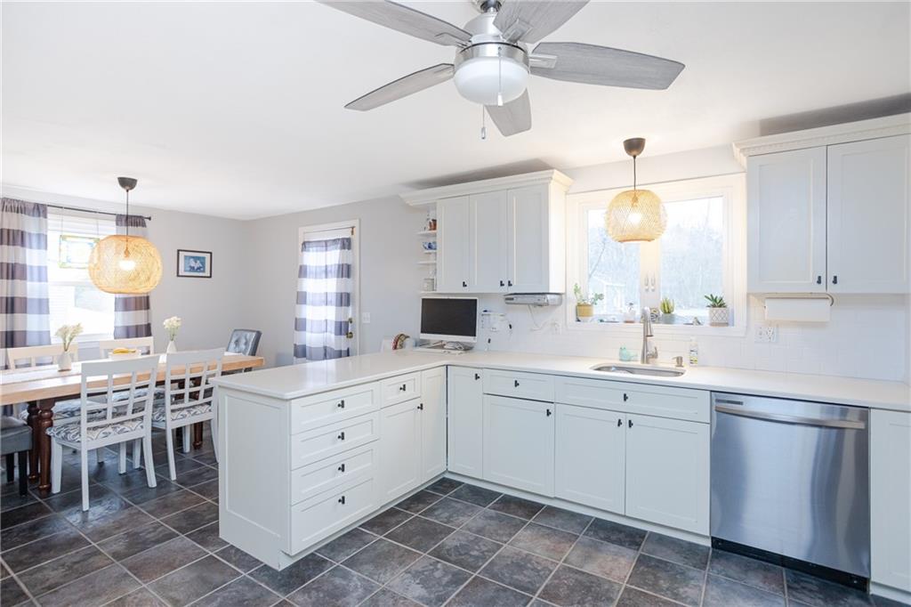 The full bathroom with a newer double vanity + tub/shower is accessible from the primary bedroom and hall. The lower level provides even more space with a family room, cozy second fireplace, along with a generously-sized third bedroom and an updated full bathroom with shower. The cleverly designed laundry area adds convenience, while a private entry to the lower level opens up additional possibilities for use—ideal for guests or multi-generational living. The 2 car garage and large driveway are great for parking, storage and play. This home is within walking distance to the beach at Bristol Ferry Town Common, where you can swim, fish, and take in amazing sunset views. A quick drive over the Mount Hope Bridge where you can enjoy all that Bristol has to offer, while living your Aquidneck Island dream…it’s the best of both worlds!