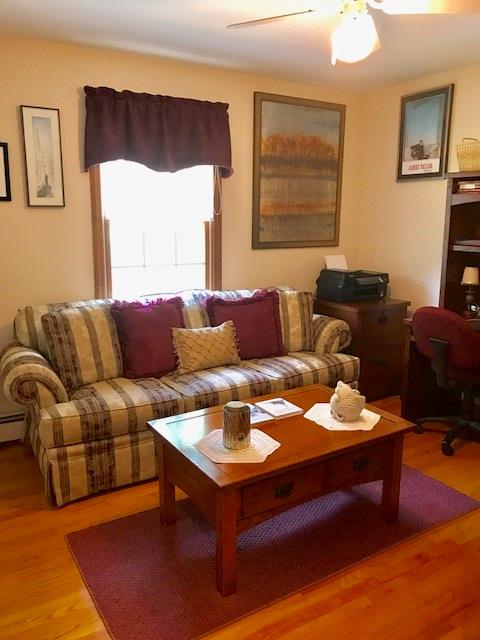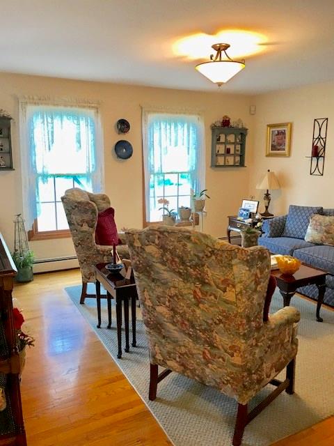 Johnston-Desirable Belknap Farms- Extremely well maintained! 4 bedroom Cape Cod, 1st floor bedroom or can be formal living room, spacious fully applianced kitchen, family room, formal dining. 1st floor lavette has plenty of room to add a stall shower, laundry. Extra large master bedroom with room for expansion for master bath, hardwood floors throughout, walkout basement, central air, vac, sprinklers and alarm. Nice deck off of the family room overlooking many perennials and annuals.