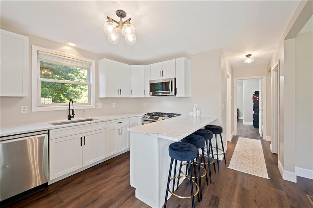 PRICE IMPROVEMENT!!!…Recently updated 3 bed/2 bath Cape, nestled on a large fenced in lot, in desirable Apponaug Cove. Completely remodeled kitchen and second floor bath, along with other refreshes throughout. Partially finished walkout basement offers a generous sized family room, laundry area & utility room. Solar panels to help offset raising energy costs adorn the less than two year old roof.