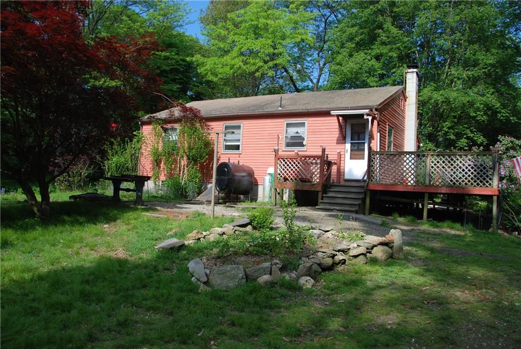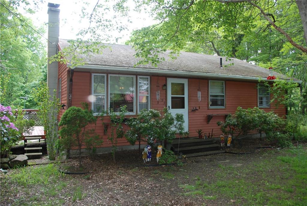 Secluded 2 bed country Ranch on picturesque 3 acre wooded lot, set back from the road for extra privacy. Spacious deck and large yard with established flower and vegetable gardens. The property has several outbuildings including a wood shed, work shop, garden/tool shed, and chicken coop. This home needs to be updated but has a open floor plan with hardwood floors throughout just waiting for you to add your personal style.