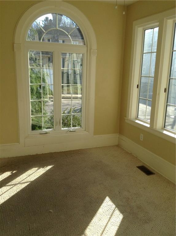 Bright unique condo unit located in the historical north end of Woonsocket and close to mass line. 1ST floor w/ private entrance. This 6 room, 3 bed, 2 bath offers hardwoods floors , large windows, high ceilings, Stainless steel appliance kitchen with granite and island, open floor plan living room with fireplace, bright sun room, master with private bath, large closets, laundry hook up in unit. Central heat and central air, intercom security system, off street parking. Close to park, 20 minutes to providence and train station. NO pets or smoking.